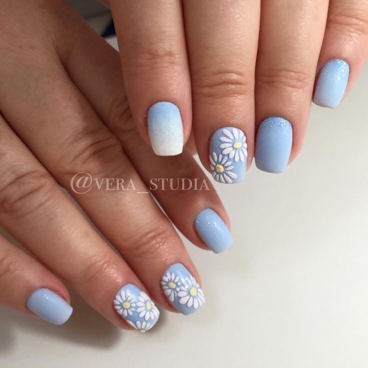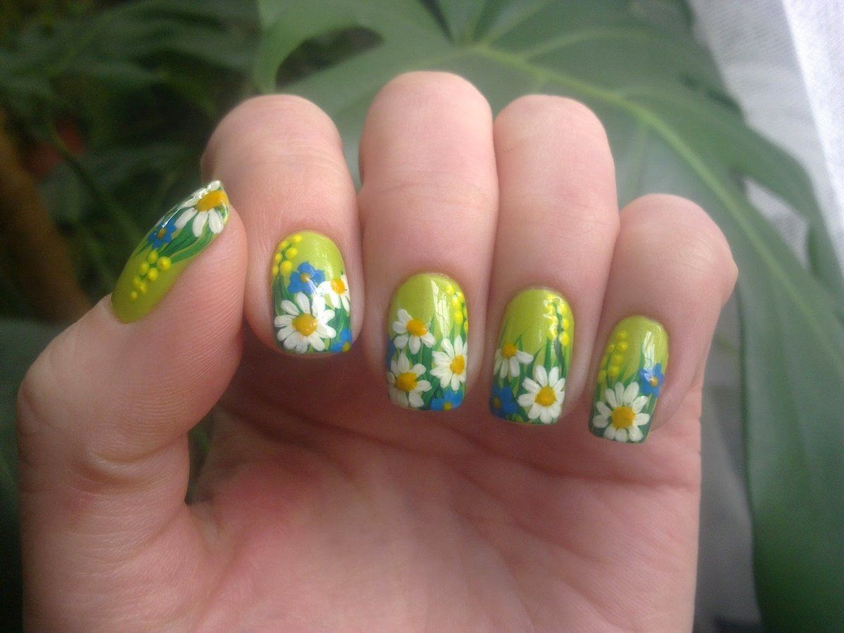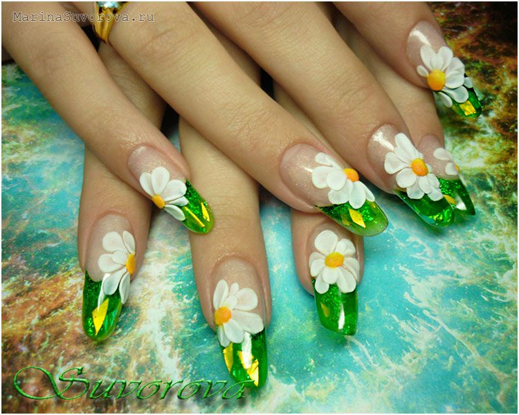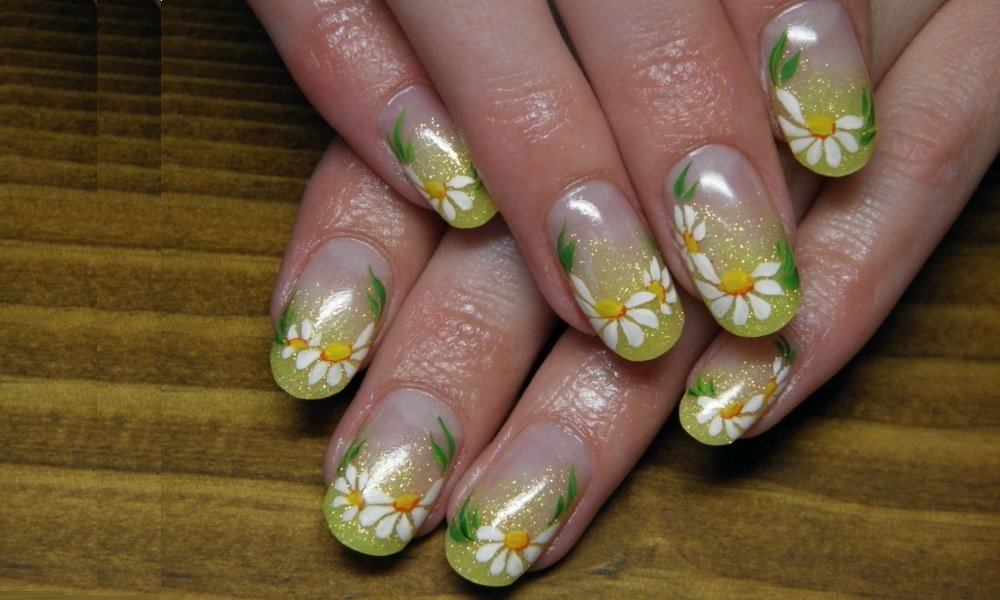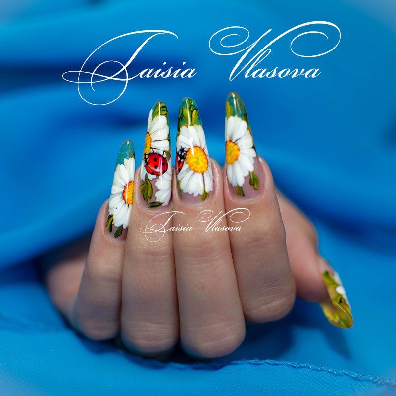 Manucure avec marguerites: Nail art intéressant sur la photo pour toutes les occasions