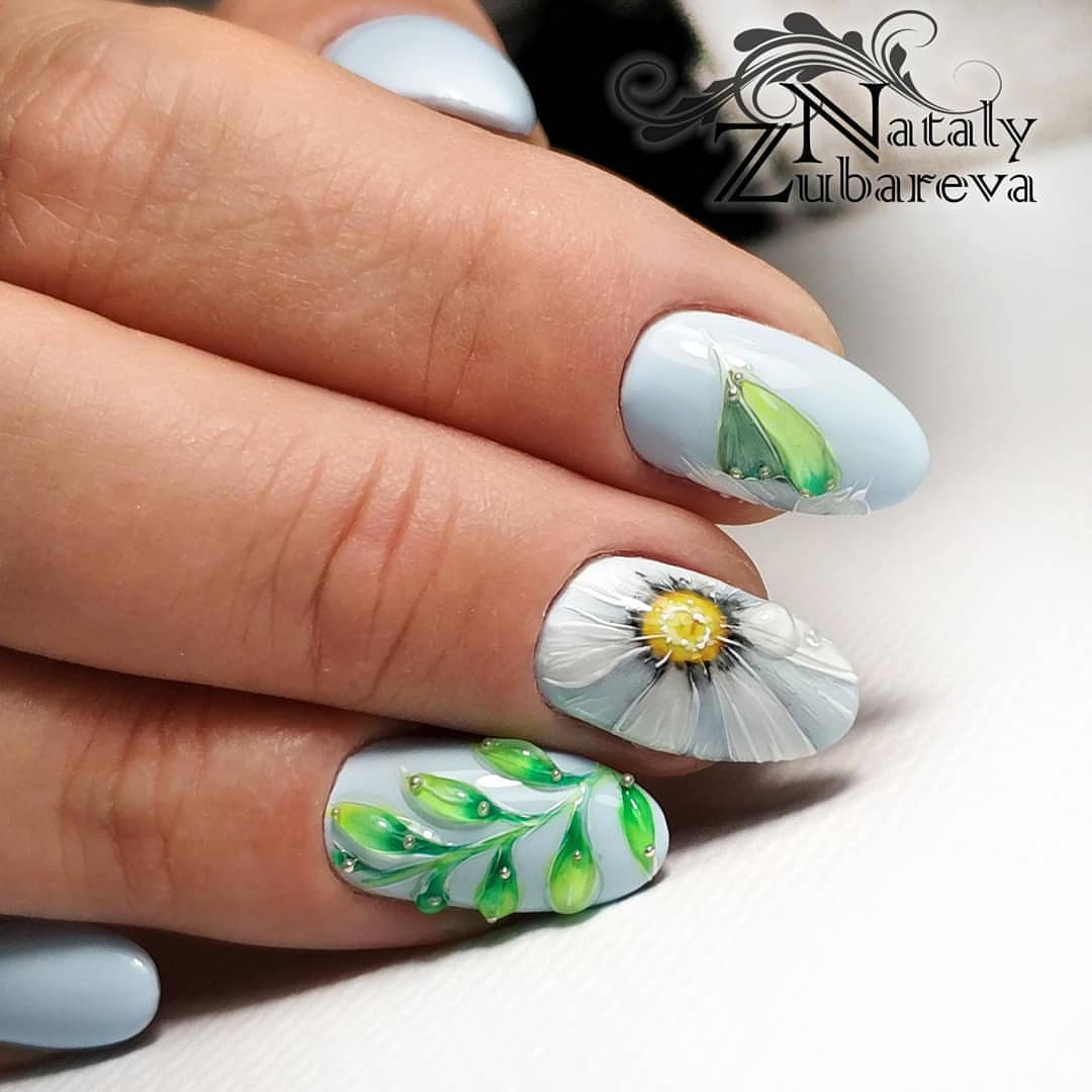 La conception de la manucure pour femme varie d'une saison à l'autre. Mais il existe des options pour le nail art qui sont restées pertinentes pendant plus d'un an. Voici un dessin des ongles avec des motifs floraux. Une manucure avec pâquerettes est l’une des solutions de manucure les plus pertinentes et les plus recherchées.