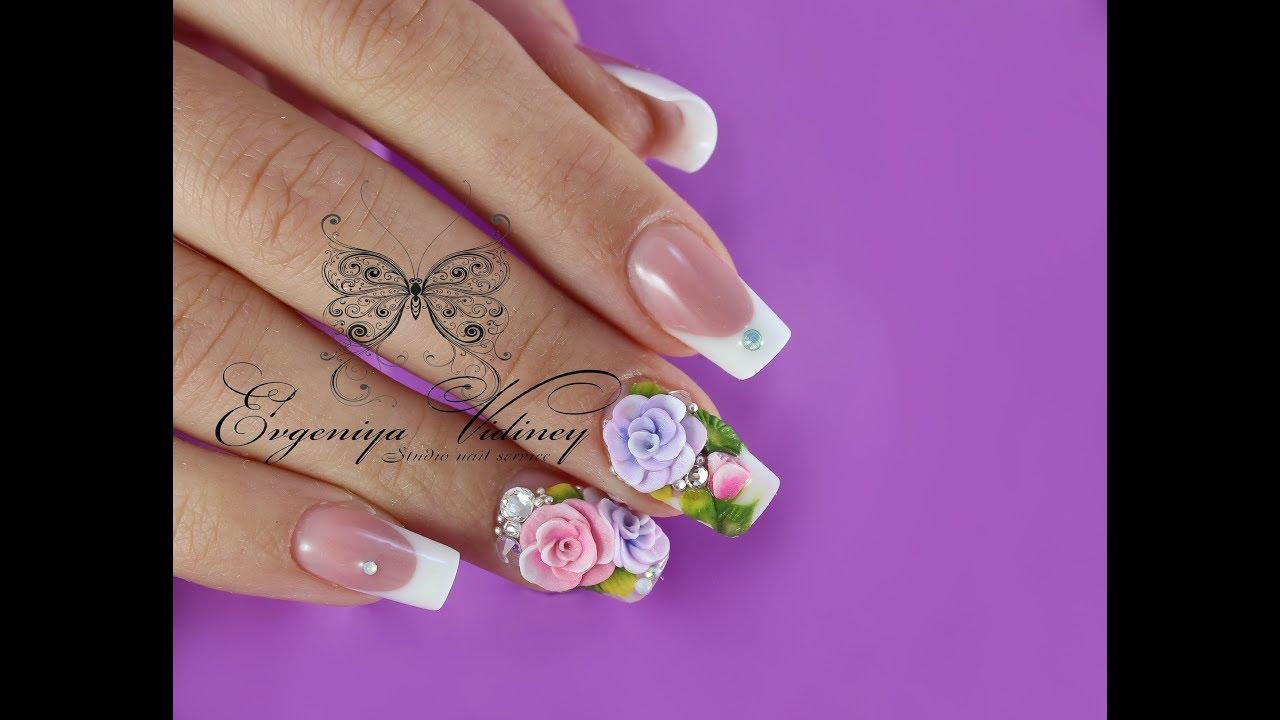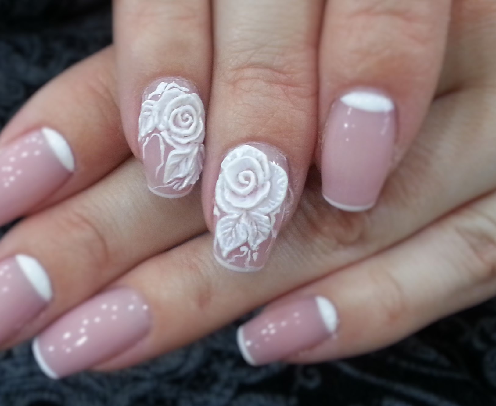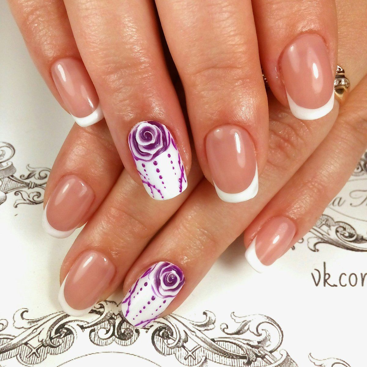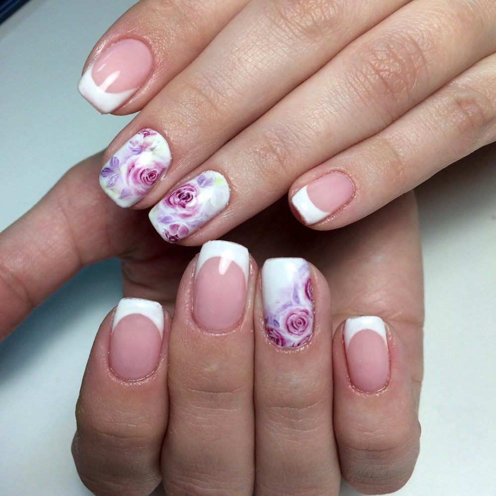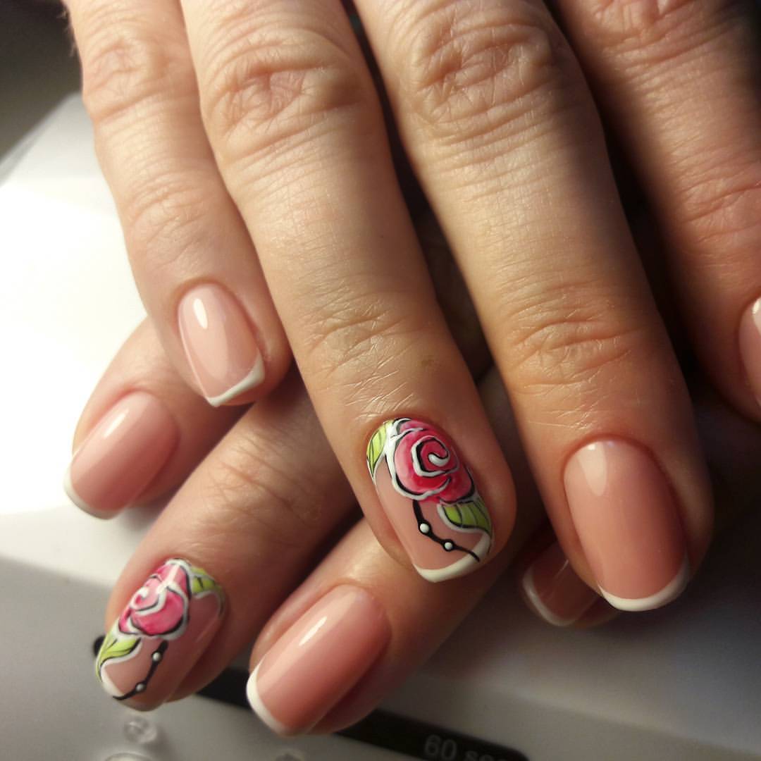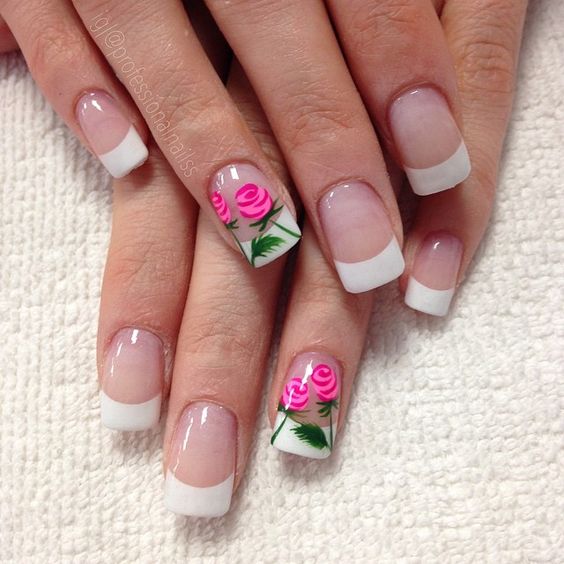 Manucure française avec des roses