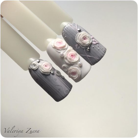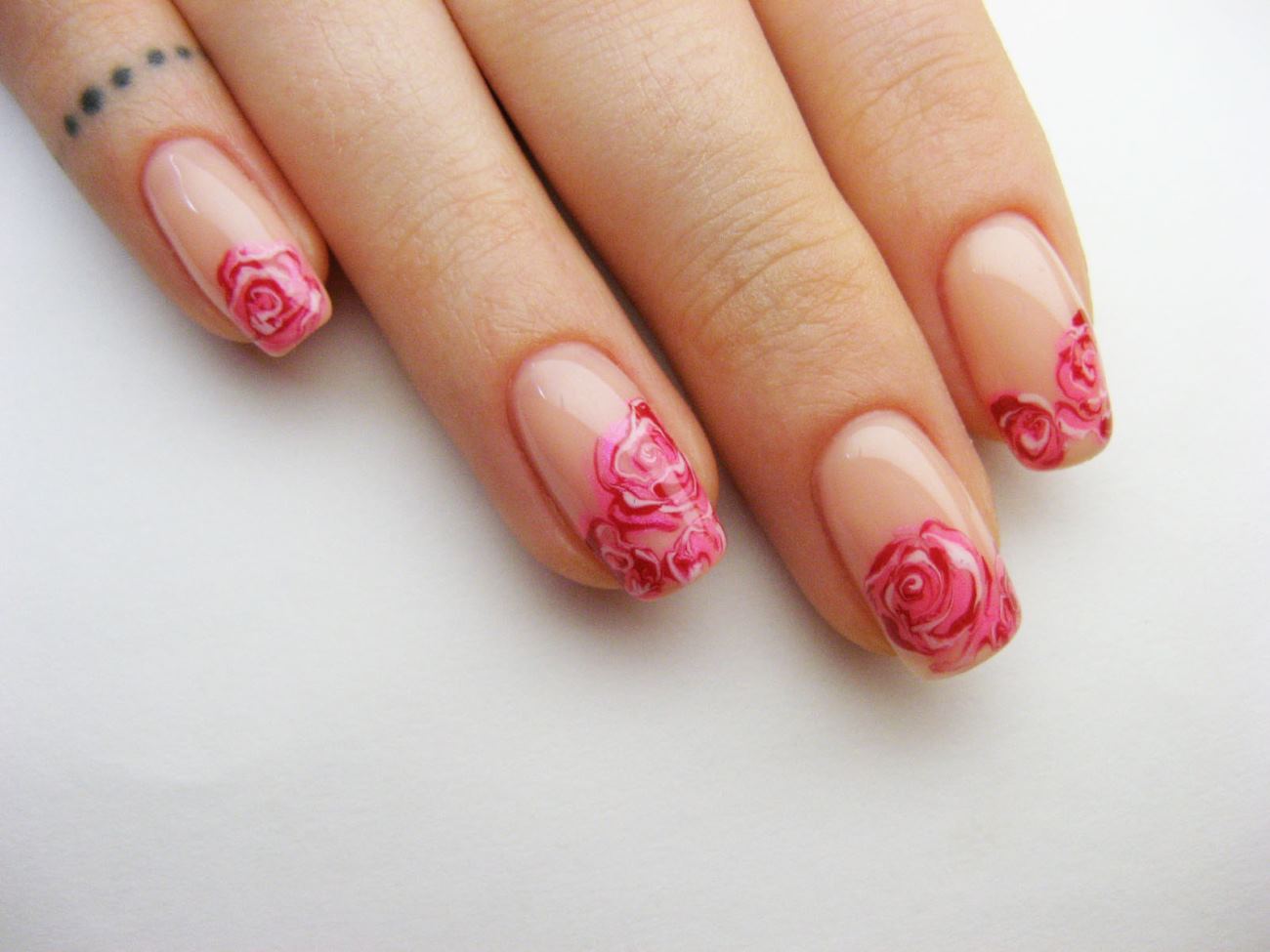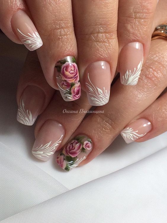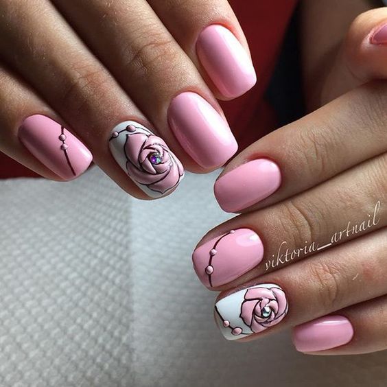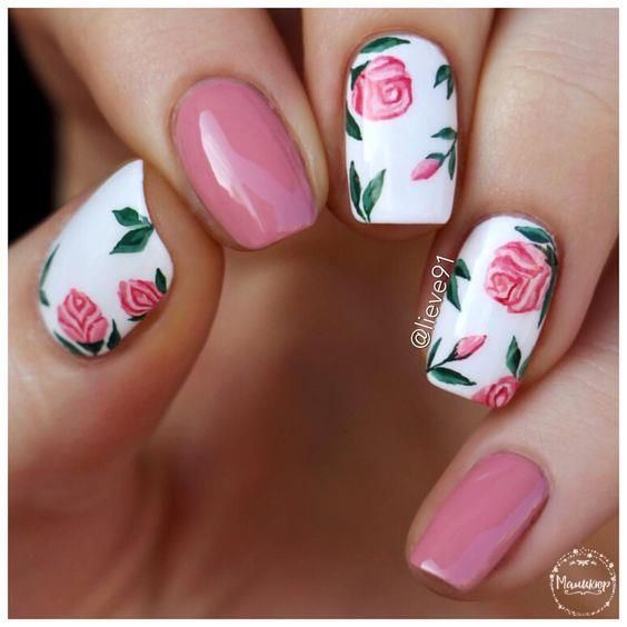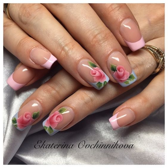 Lorsqu'elles visitent un pédicure et un manucure, la plupart des femmes choisissent des roses pour choisir un motif sur leurs ongles. Une fleur rose symbolise la tendresse, la passion, l'amour ainsi que l'inaccessibilité simultanée. L'interprétation dépend de la couleur et du bourgeon des roses. Lors du choix de ce type d’ongle, tout salon de beauté, ainsi qu’un maître travaillant à domicile, peut offrir de nombreuses combinaisons de couleurs et variétés de plantes enchanteurs.