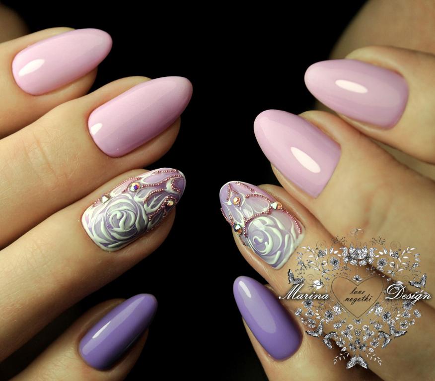 À ce jour, de nombreuses fashionistas préfèrent les manucures avec un gel lustrant. Cette option est très demandée en raison de sa polyvalence et de son aspect pratique. Avec le bon choix de couleur et de motif, cette manucure convient à la fois au milieu de travail et à la détente entre amis. L'ornement le plus courant et le plus recherché est une rose inaccessible, mais en même temps délicate. Lors du choix de cette image, le manucure est invité à faire preuve de talent et d’imagination, car il existe actuellement de nombreux matériaux et techniques auxiliaires.