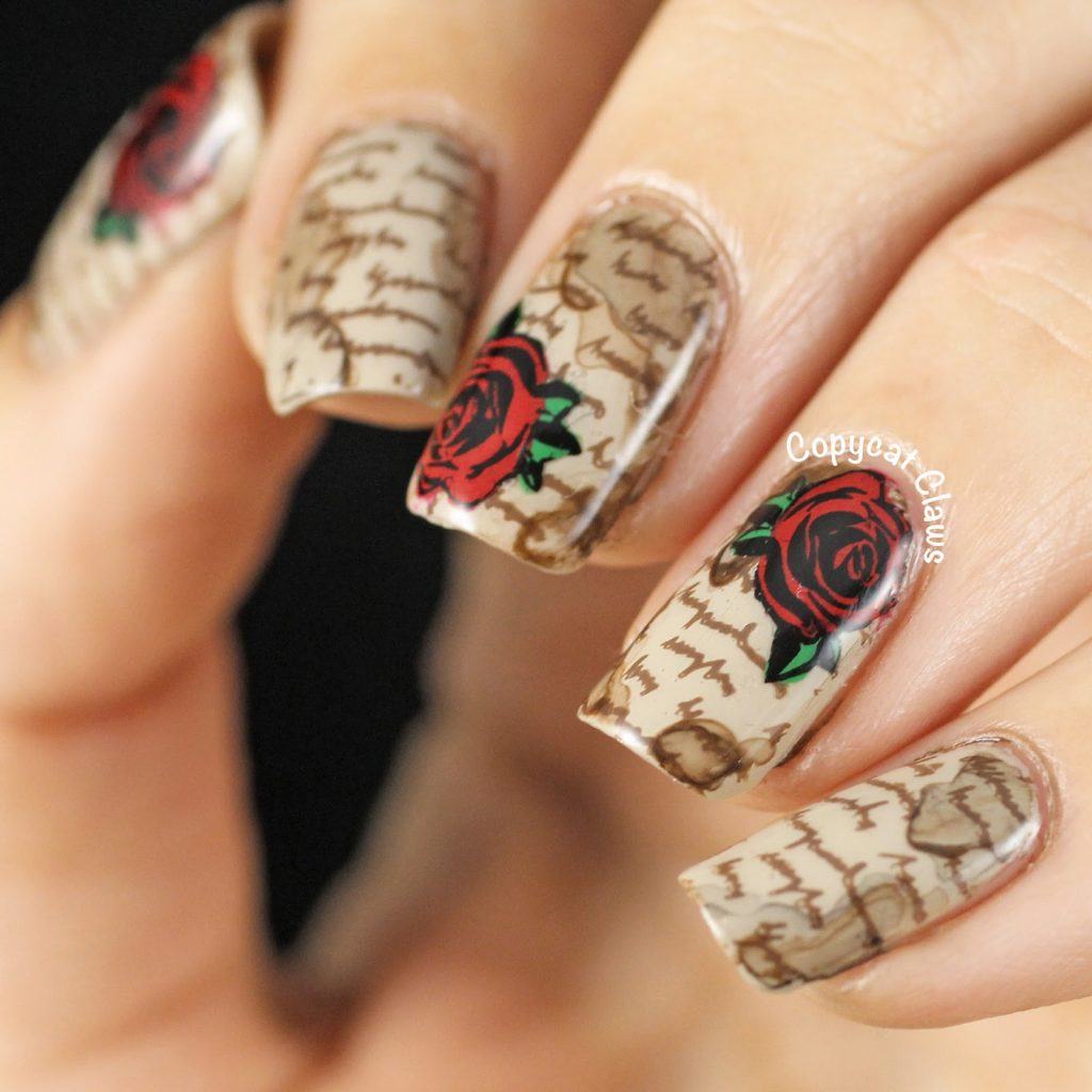 Manucure avec des roses: Idées de beau design + 100 photos