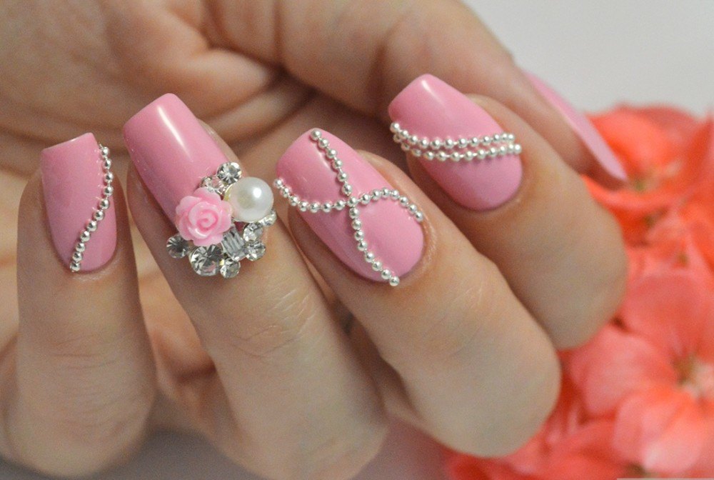Une option douce et féminine pour la manucure est le rose et les nuances de lit. Vous pouvez donner une explication simple du choix de ces couleurs: c’est la tendresse, la romance, le style. La palette de couleurs des nuances claires est très pratique, car elle est combinée avec différents styles de vêtements. Lors de l'exécution d'une manucure «rose poussiéreuse», les maîtres appliquent diverses variations du dessin et de la décoration des ongles avec des strass, de la poussière d'or et d'argent.