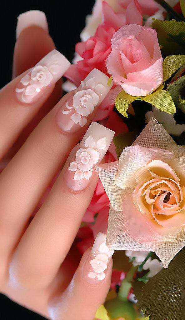 Manucure délicate aux roses blanches