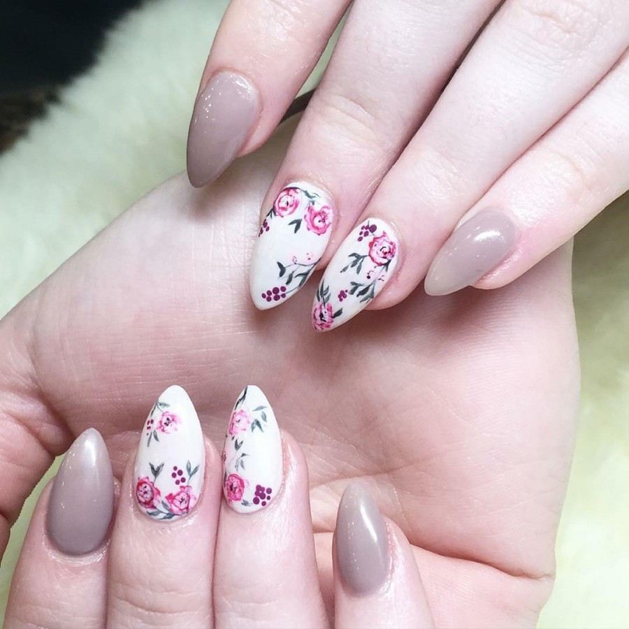 Il existe un avis selon lequel il est impossible de faire une belle manucure avec un motif sur les ongles courts. En fait, ce n’est pas le cas, puisque cette conception est universelle. Il met bien en valeur les ongles longs tout en étant idéal, même pour les plus petites longueurs. Après tout, l’essentiel est de dessiner une fleur de taille optimale, à partir des données de la plaque à ongles.