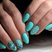 De plus, le revêtement des ongles courts ne doit pas nécessairement être léger. Les teintes vives et saturées ne feront que souligner un beau design sophistiqué en forme de sakura.
