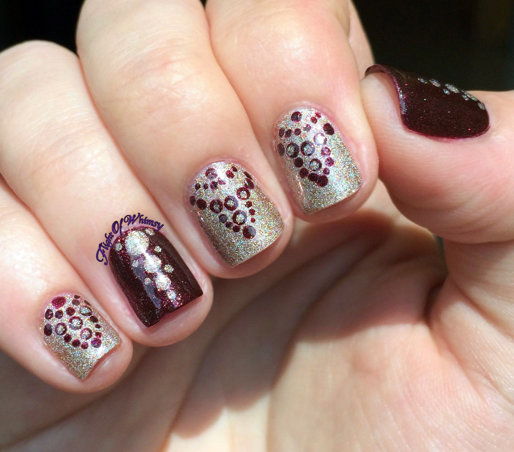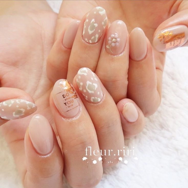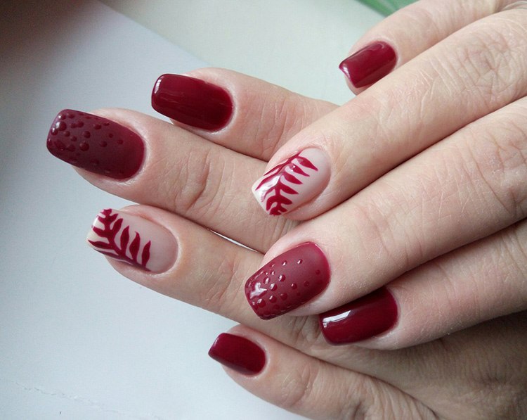 - Nail art avec des points et une feuille.