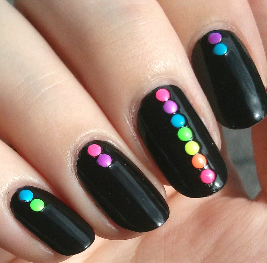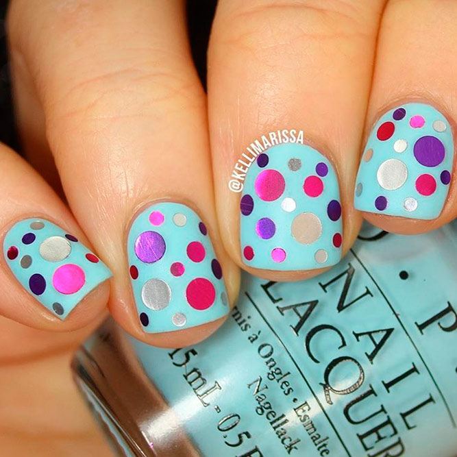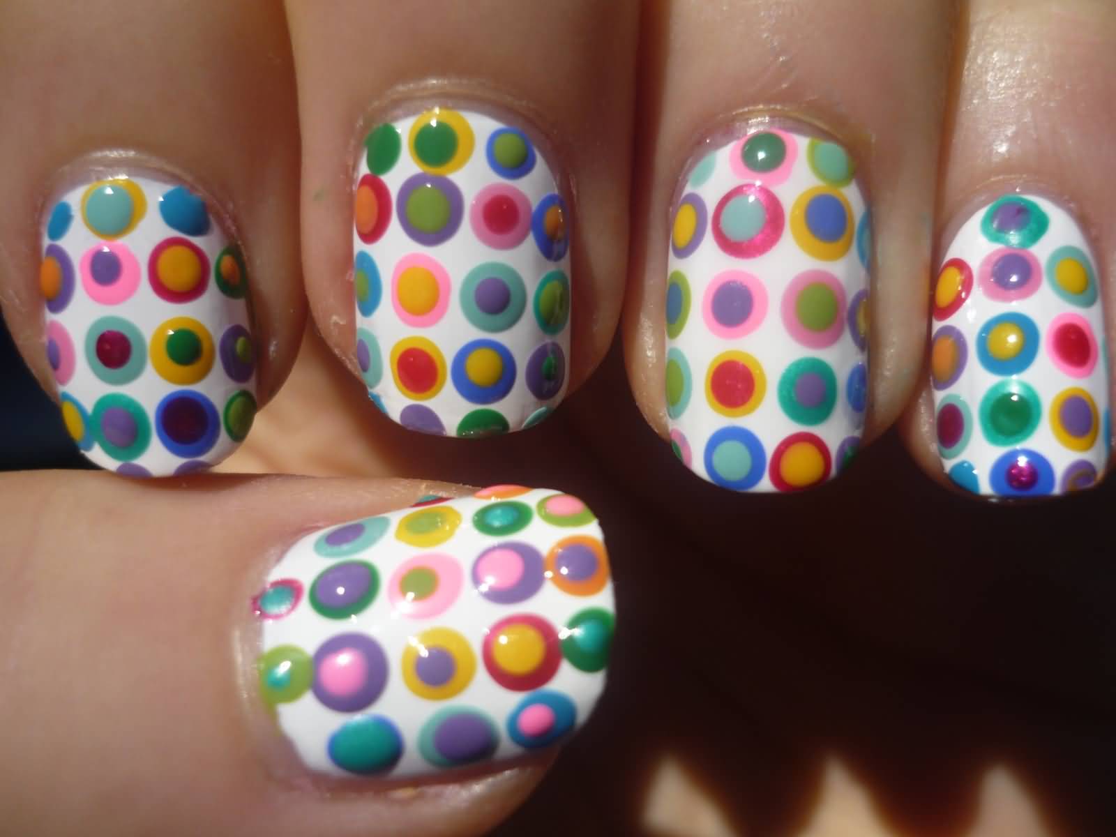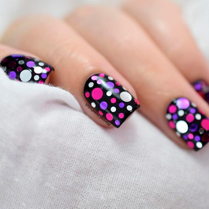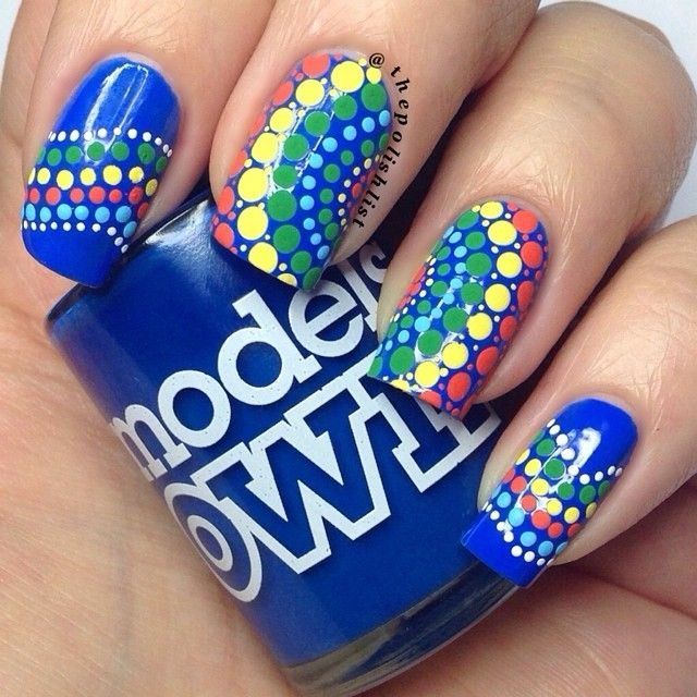 Manucure à pois multicolores