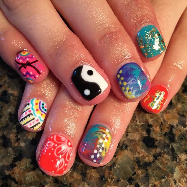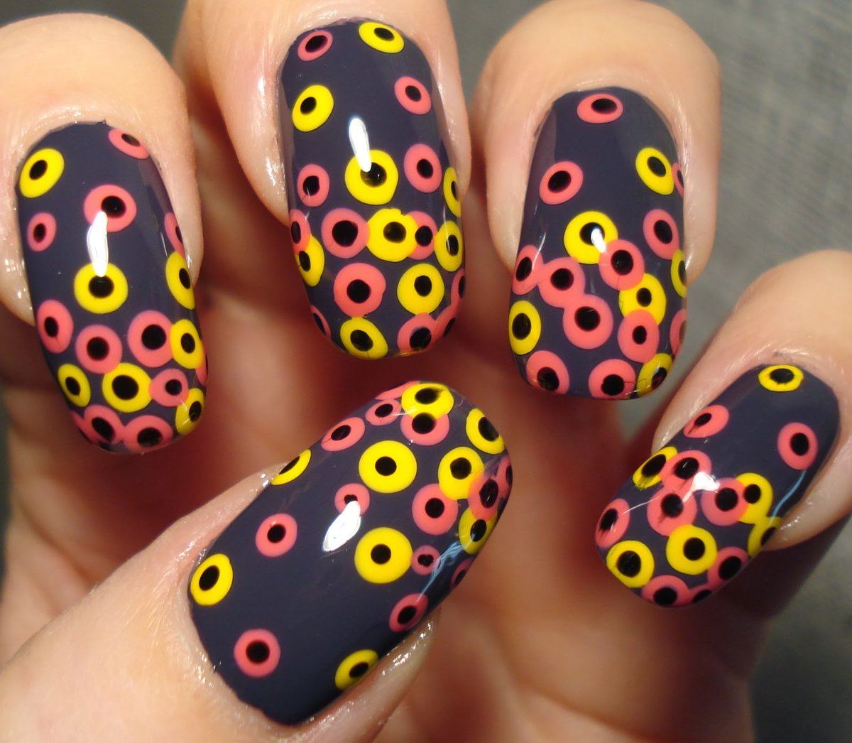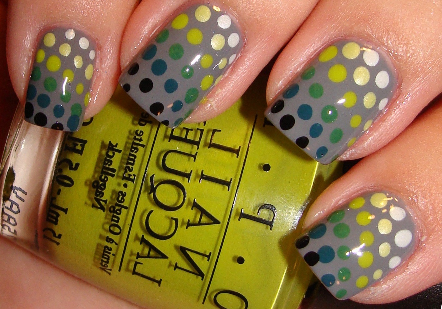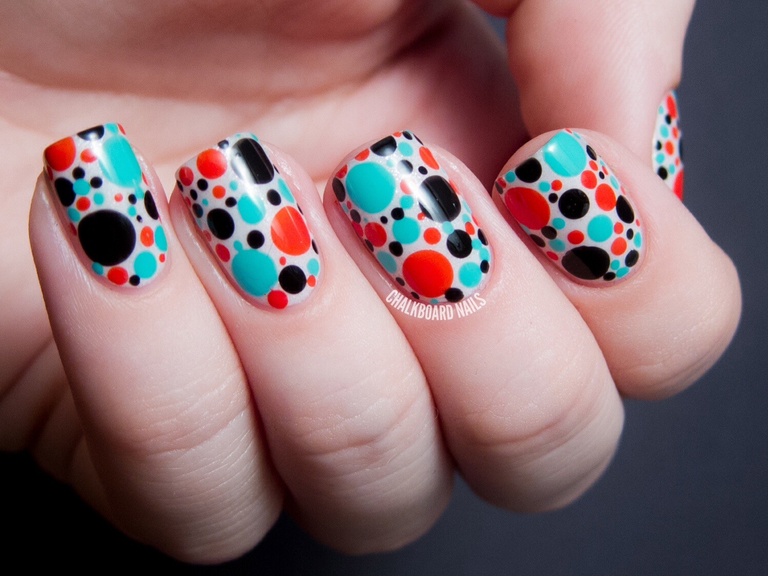 Manucure à pois multicolores