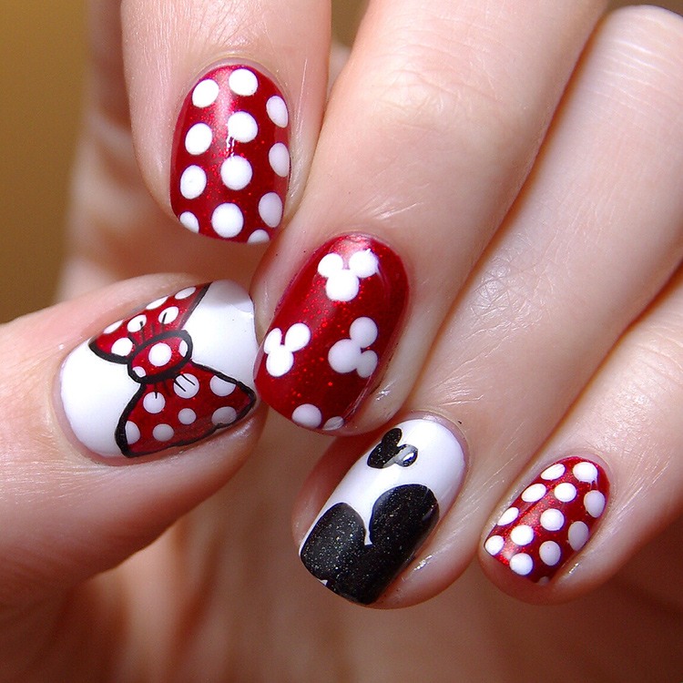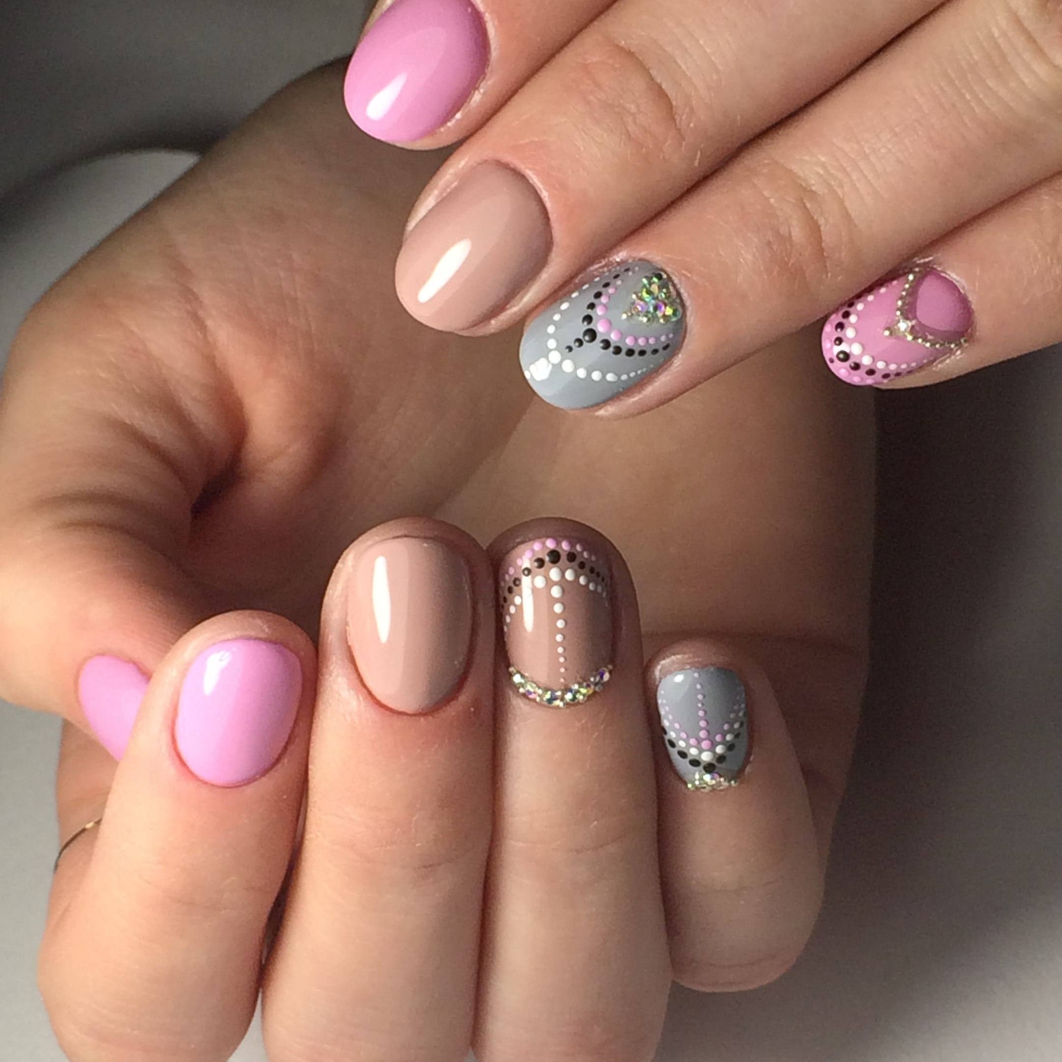 - Manucure avec des points, des rayures et des coeurs.