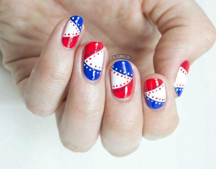 Manucure rayée à pois