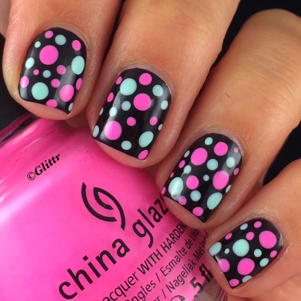 Points noirs et blancs en manucure.