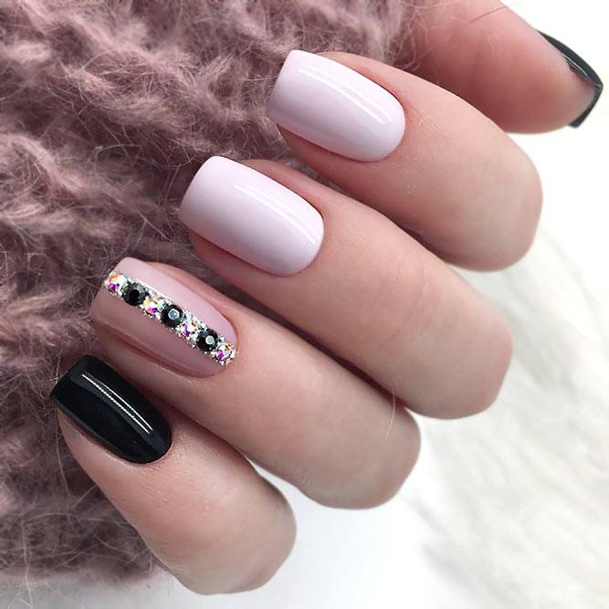 Une manucure avec des strass au lieu de points est magnifique et spectaculaire.