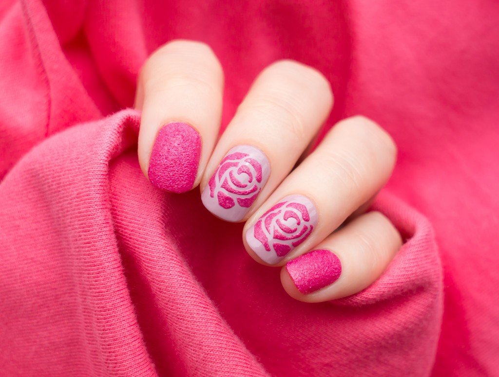 Pour donner à une manucure une texture spectaculaire, utilisez de la poudre acrylique. Une telle manucure est très simple à réaliser par vous-même, tout en ne nécessitant pas beaucoup de temps. Pour commencer, effectuez une manucure et appliquez la base. Après le séchage, vous pouvez couvrir les ongles en toute sécurité avec la nuance choisie. Appliquez ensuite la poudre acrylique sur une couche de vernis et séchez. Secouez les restes avec une brosse spéciale. Vous pouvez saupoudrer de sable de velours sur tous les ongles afin qu'ils aient un aspect inhabituel et élégant. Pour créer un nail art plus traditionnel, couvrez plusieurs doigts avec de l'acrylique, dessinez les motifs avec un pinceau fin et recouvrez-les également de sable velours.