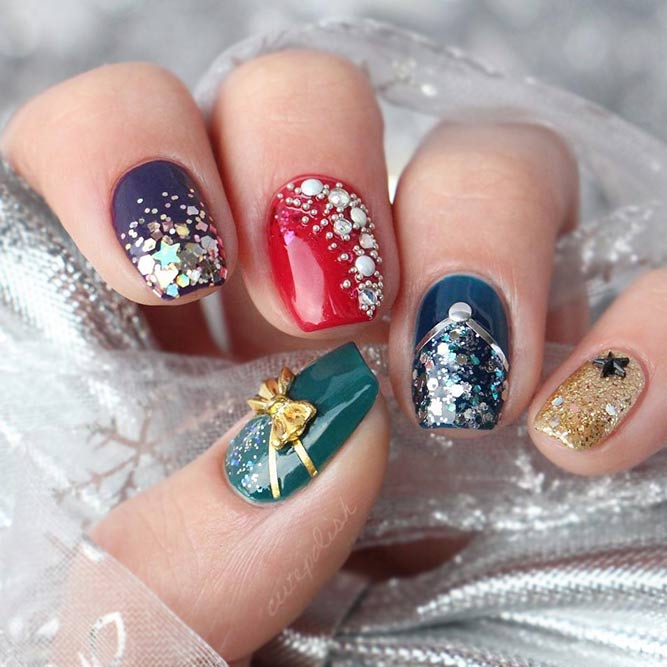 Manucure-toi en utilisant des paillettes et des paillettes.