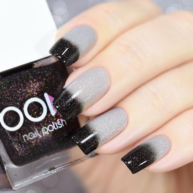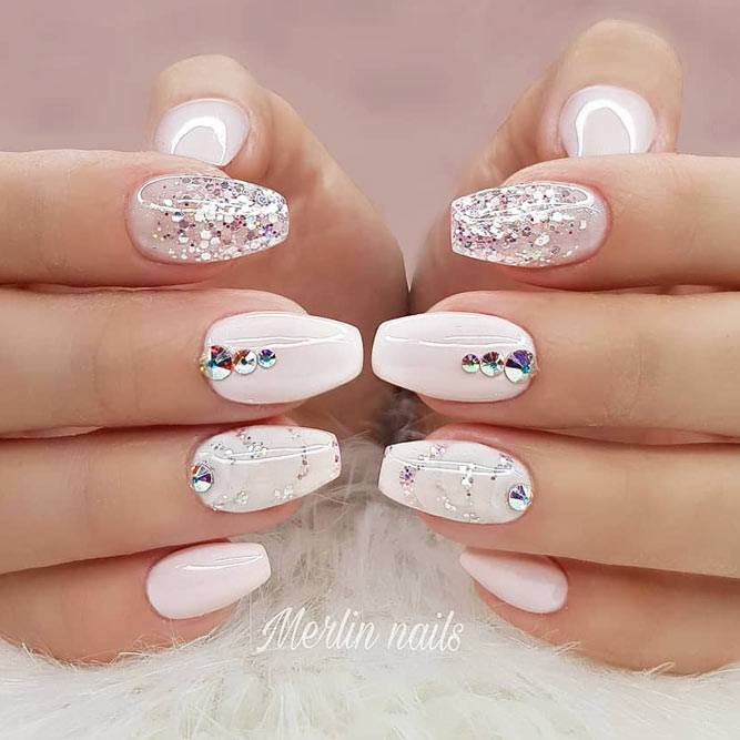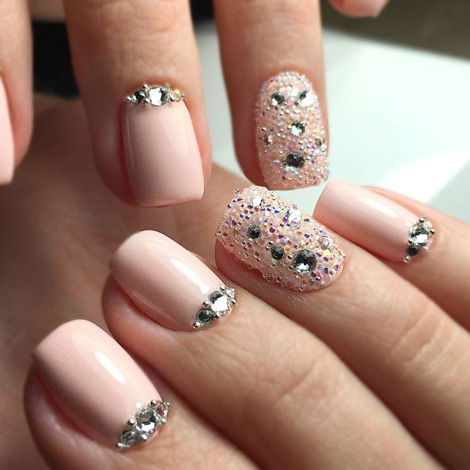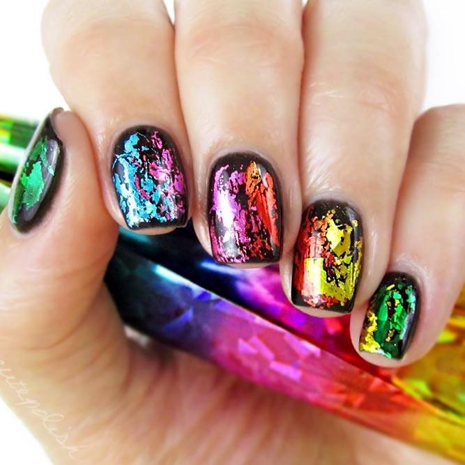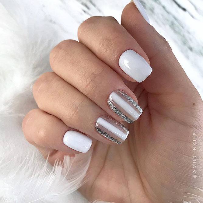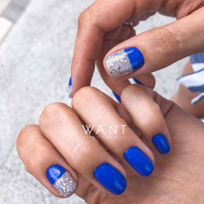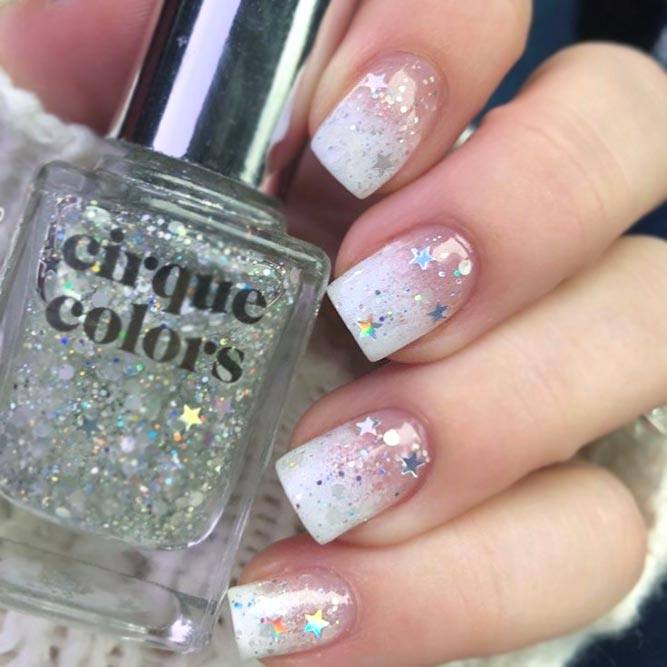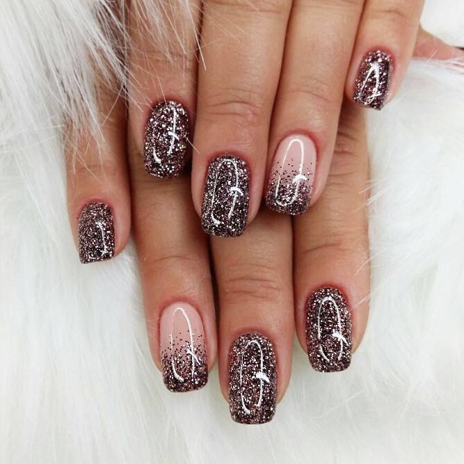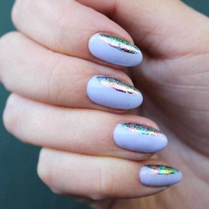 Les paillettes sont un excellent décor pour la manucure. S'il est très difficile pour une fille de faire un dessin ou un motif sur ses ongles, mais que vous souhaitiez tout de même obtenir un nail art spécial et inégalé, des étincelles viendront à la rescousse. Avec leur aide, la manucure brillera et étonnera les autres par sa sophistication. Vous pouvez faire briller l'auriculaire, l'index et la moitié de l'annulaire et peindre le reste avec un vernis de la tonalité souhaitée. Ombre faite avec des brillants dorés ou argentés semble très originale. Une autre bonne option est les trous ou les sourires avec des étincelles de toutes les couleurs.