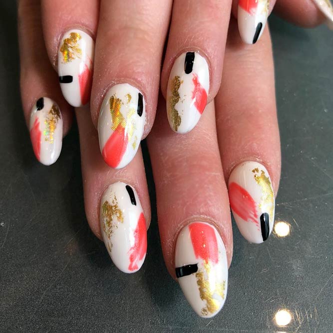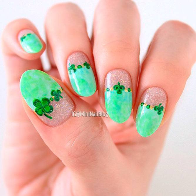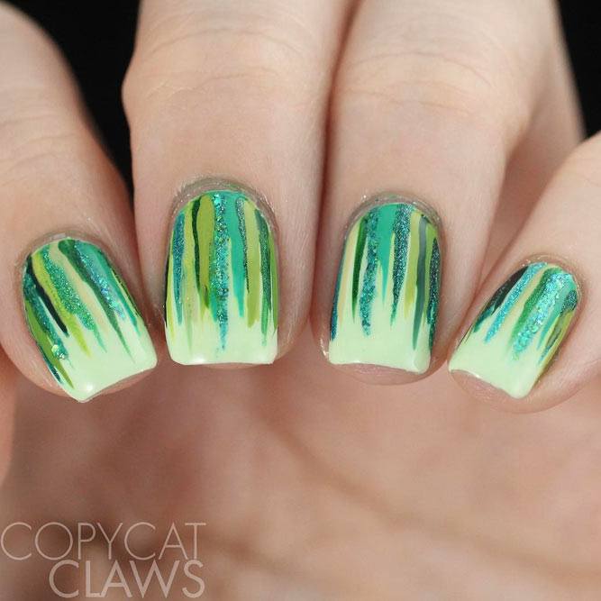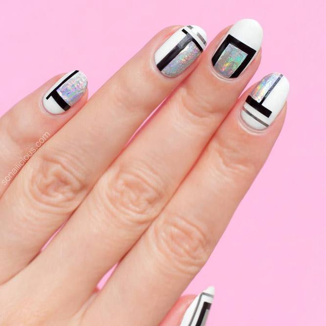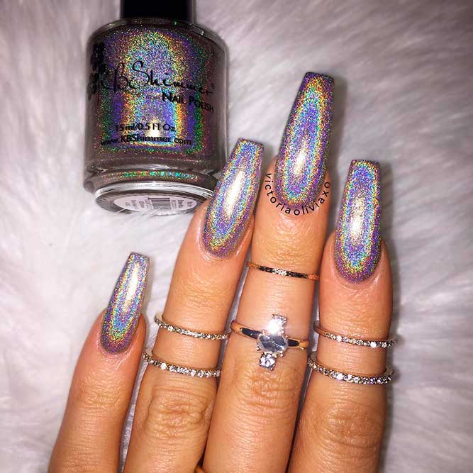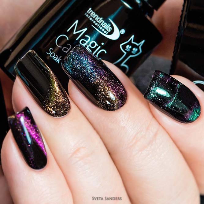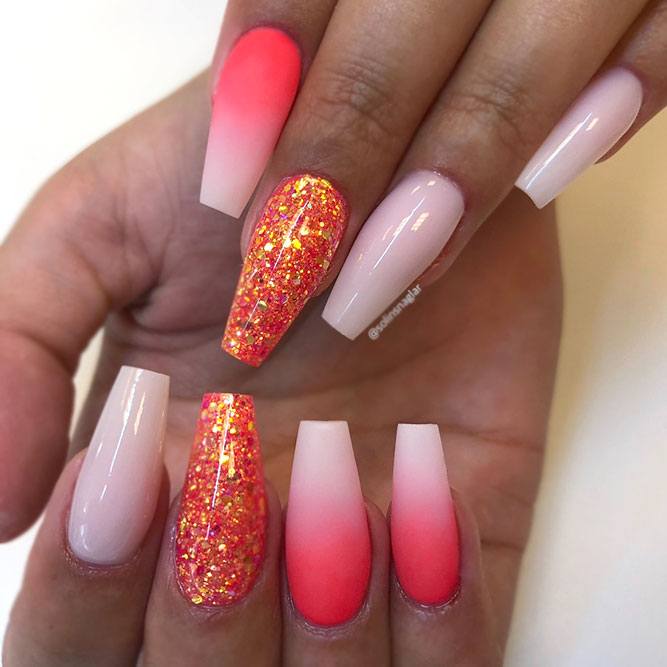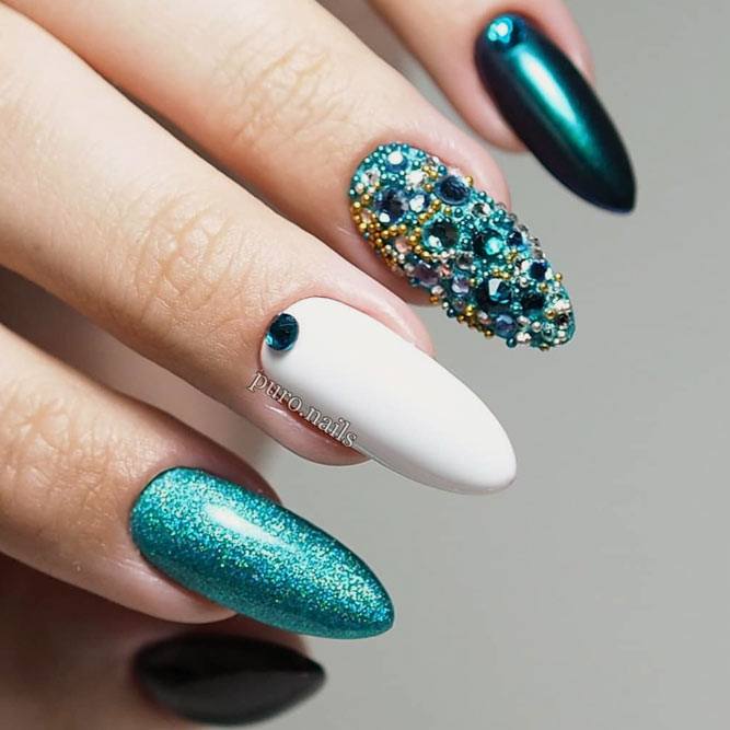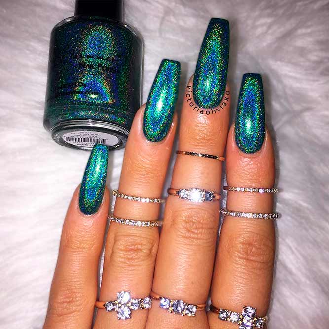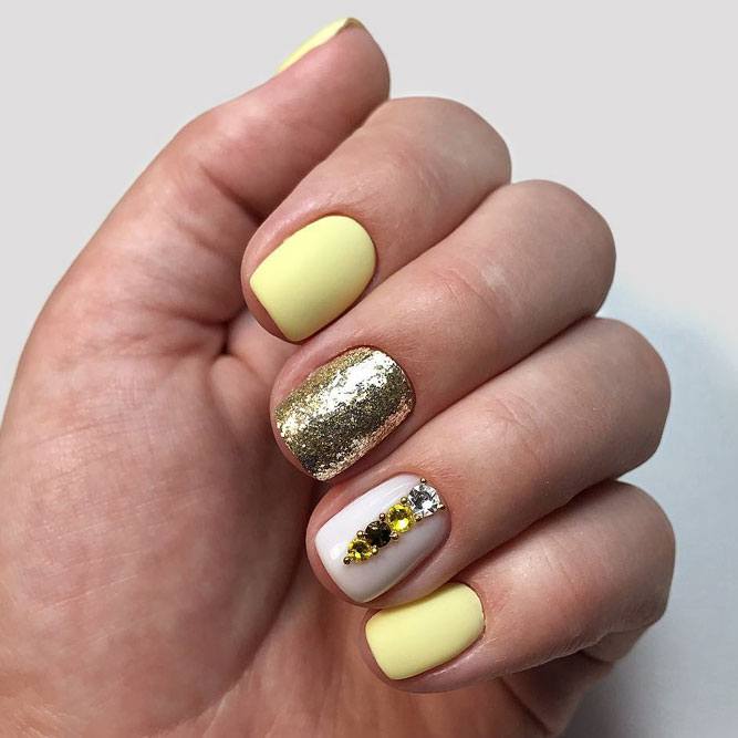 Les paillettes sont un excellent décor pour la manucure. S'il est très difficile pour une fille de faire un dessin ou un motif sur ses ongles, mais que vous souhaitiez tout de même obtenir un nail art spécial et inégalé, des étincelles viendront à la rescousse. Avec leur aide, la manucure brillera et étonnera les autres par sa sophistication. Vous pouvez faire briller l'auriculaire, l'index et la moitié de l'annulaire et peindre le reste avec un vernis de la tonalité souhaitée. Ombre faite avec des brillants dorés ou argentés semble très originale. Une autre bonne option est les trous ou les sourires avec des étincelles de toutes les couleurs.