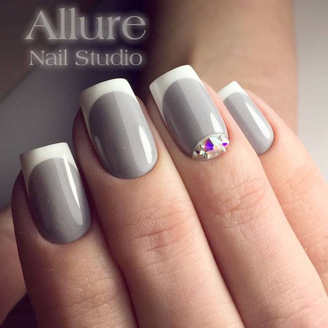 Manucure française n'aime pas l'amour de nombreuses fashionistas. Un tel nail art a l’air très soigné, doux et attrayant. Effectuer le français seul n'est pas difficile. Si vous ne pouvez même pas dessiner des sourires sur le bord des ongles, vous pouvez utiliser des bandes spéciales qui faciliteront grandement cette tâche. Pour une manucure française classique, les ongles sont recouverts d'un ton rose pâle ou restent transparents. Pour une manucure modérée et calme, utilisez du blanc pour les trous. Si vous voulez quelque chose d'inhabituel et d'extravagant, vous pouvez faire des trous dans des tons clairs et accrocheurs. Il est également intéressant d'essayer la couleur principale des soucis. L'aspect d'origine est un revêtement rouge avec des trous noirs ou blancs. Pour diversifier le design du nail art français, vous pouvez vous concentrer sur un ou deux ongles. Pour ce faire, recouvrez-le simplement d'un ton, d'étincelles ou de strass différents, ou décorez-le de motifs.