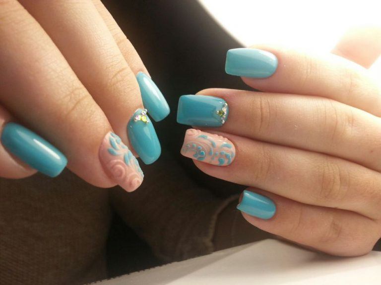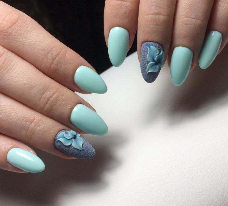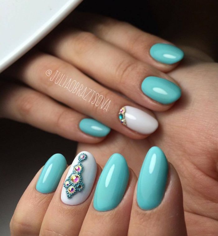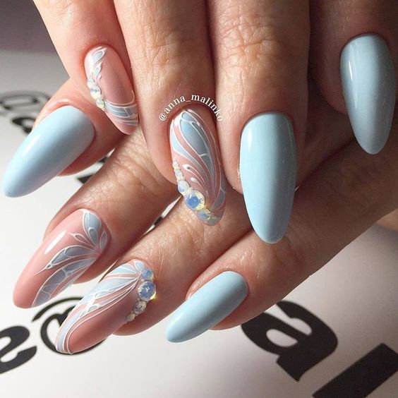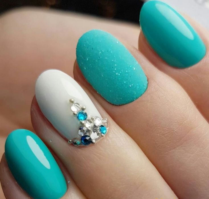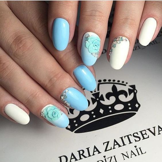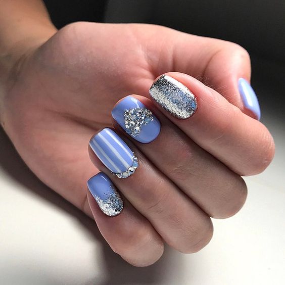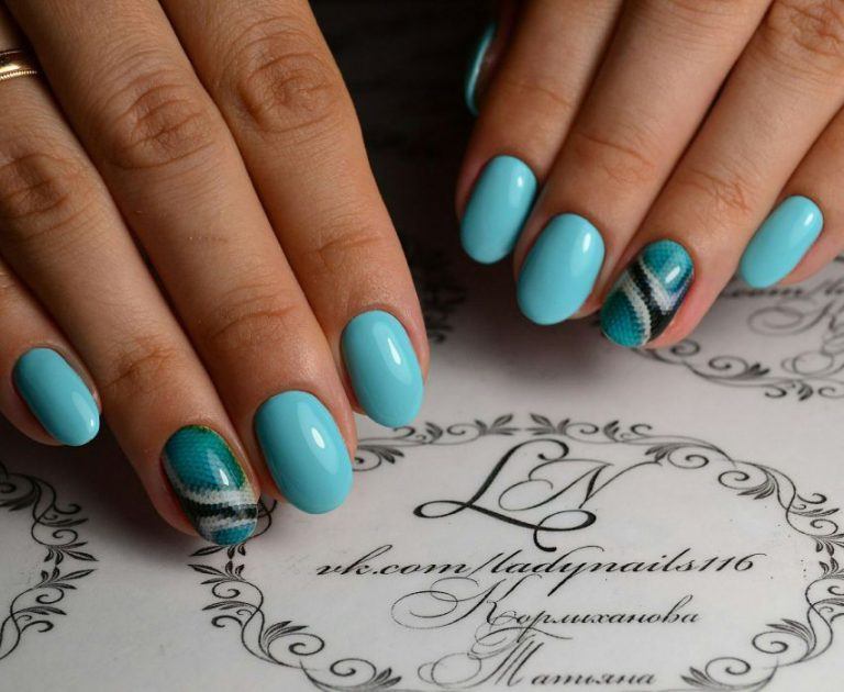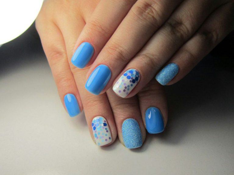 Puisque la couleur bleue elle-même est très délicate et calme, elle est souvent choisie pour un revêtement monophonique. Si vous le souhaitez, il peut être complété par diverses perles et strass pour rendre le dessin un peu plus spectaculaire.
