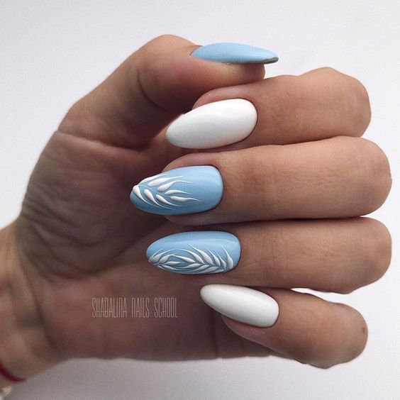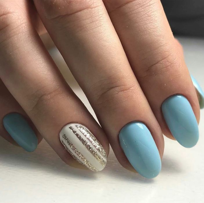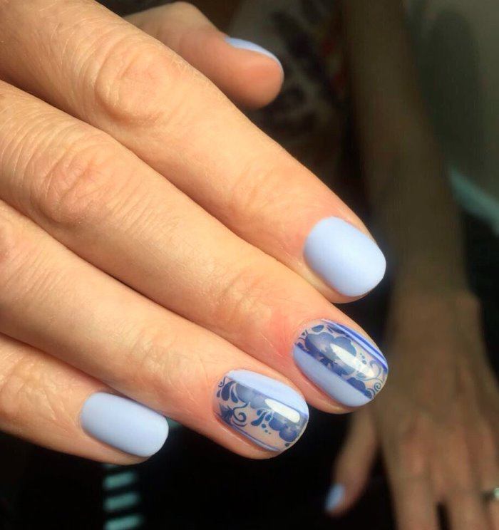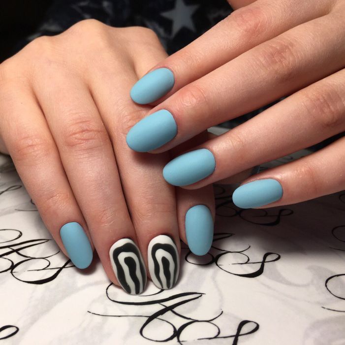 Et bien sûr, dessiner sur les ongles est toujours vrai. Qu'il s'agisse d'un petit motif ou d'une idée plus complexe, cela a toujours l'air attrayant. De plus, le bleu est une excellente option pour créer un fond sur les ongles.