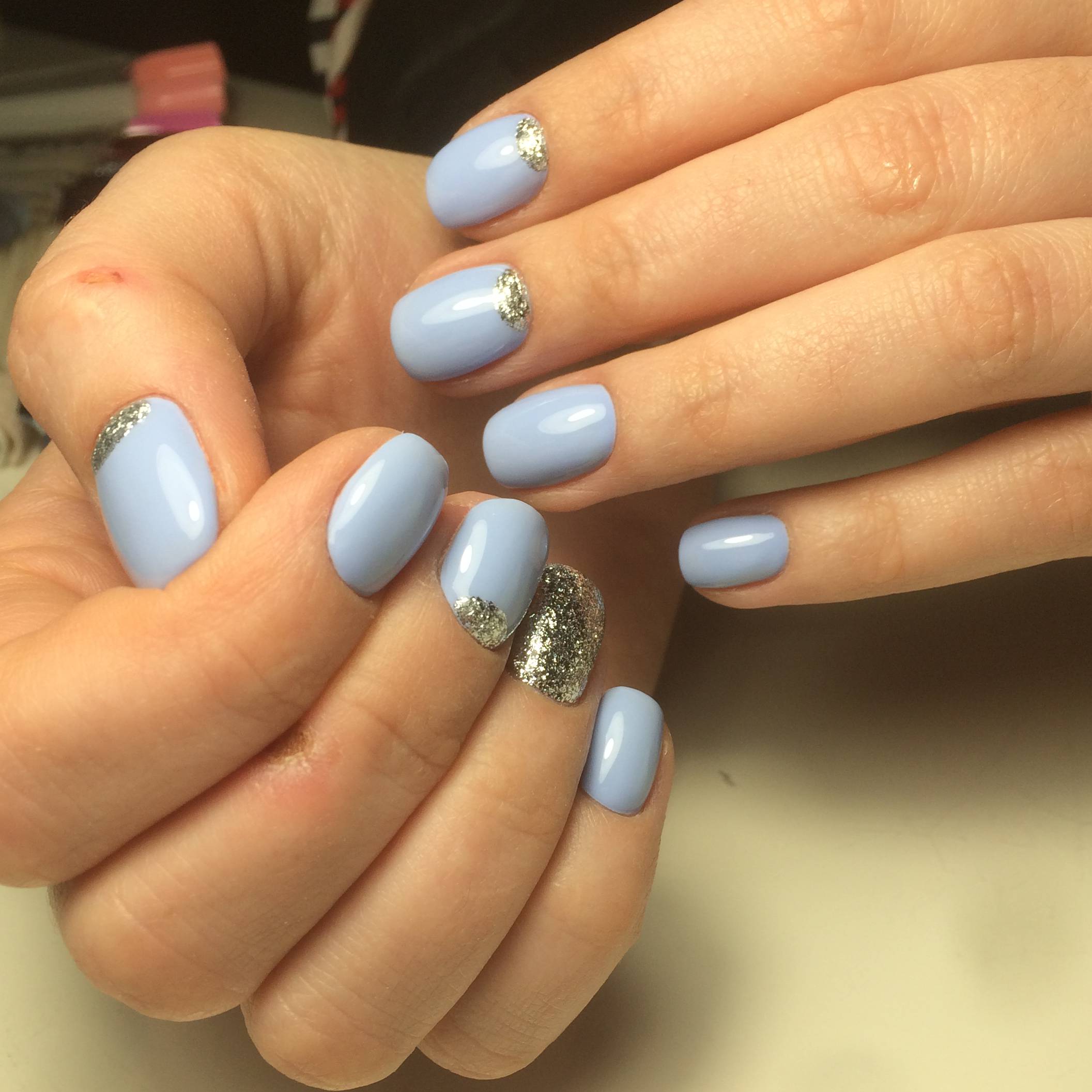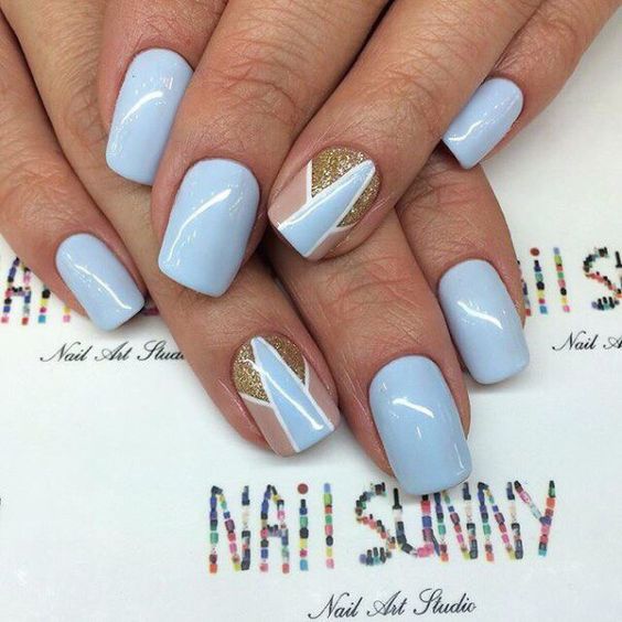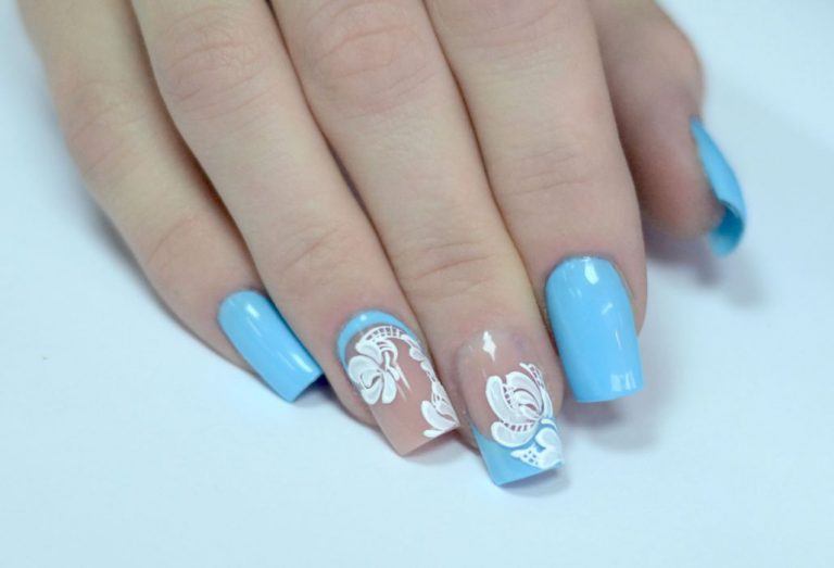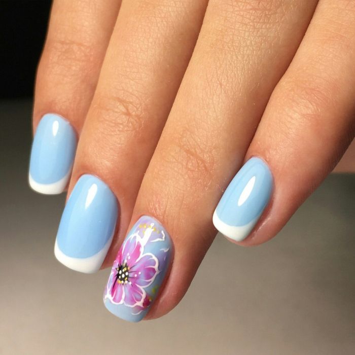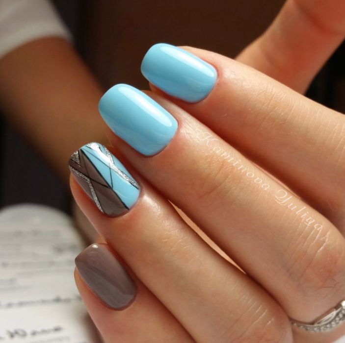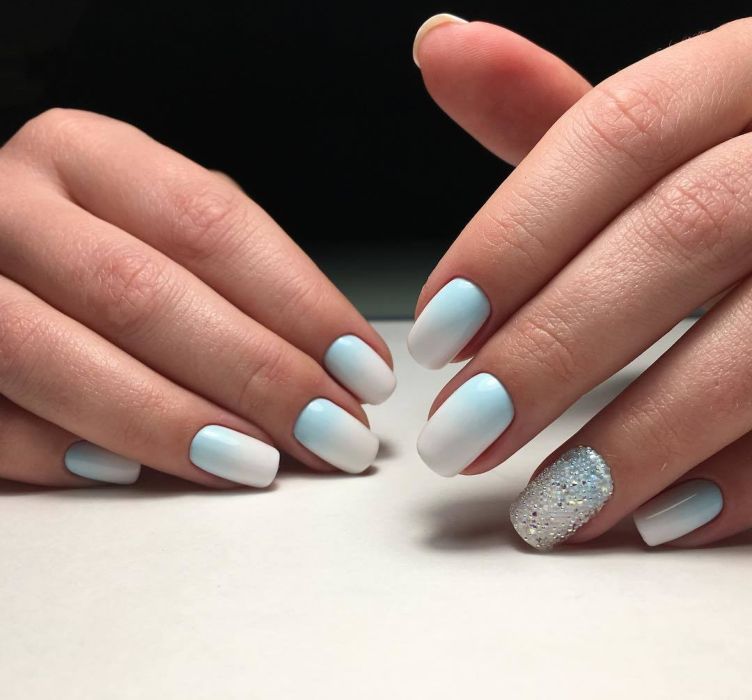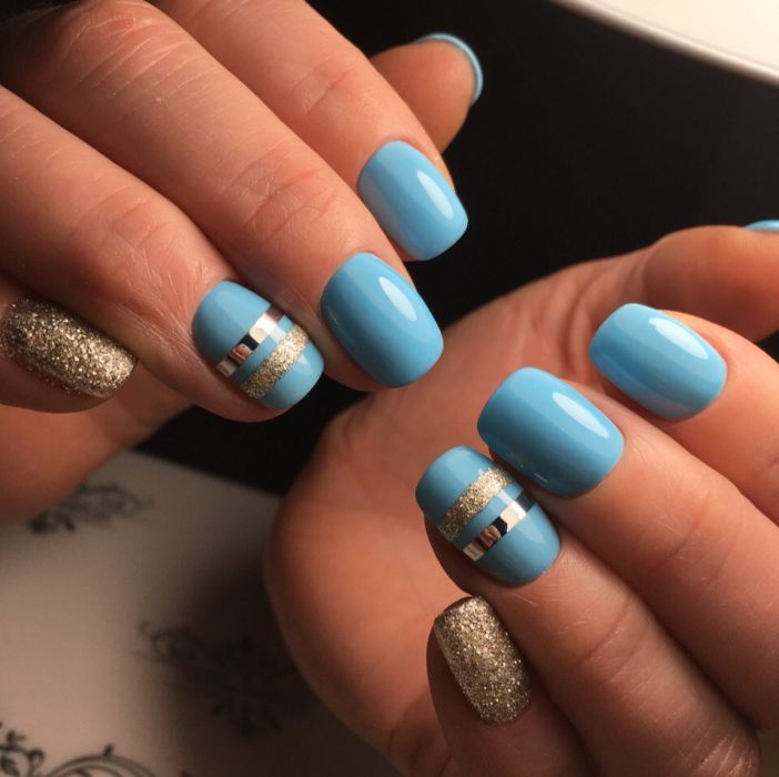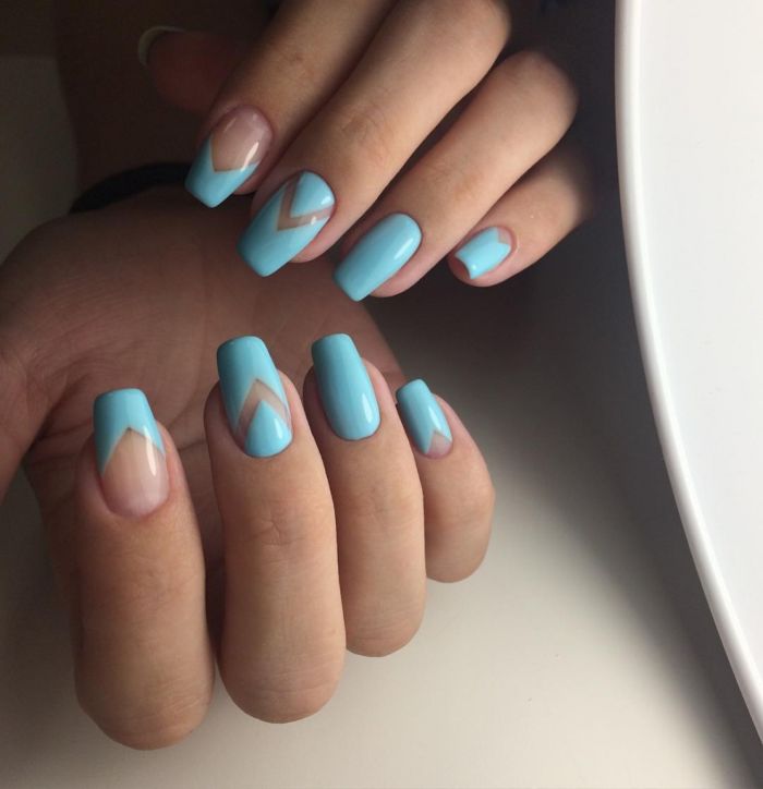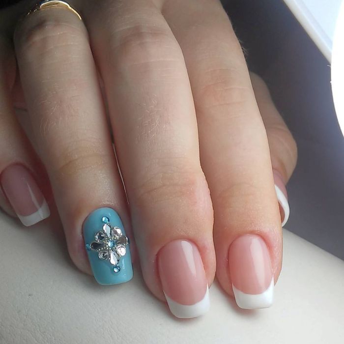 Malgré la grande popularité du design classique, vous souhaitez parfois lui ajouter de la variété et des détails intéressants. Dans ce cas, vous pouvez simplement changer la nuance en bleu. Pour cette raison, il aura l'air complètement différent. En outre, une telle manucure ajoutera une touche de tendresse et de féminité à votre image. Soit dit en passant, malgré une exécution non standard, cette conception convient même pour le travail de bureau.