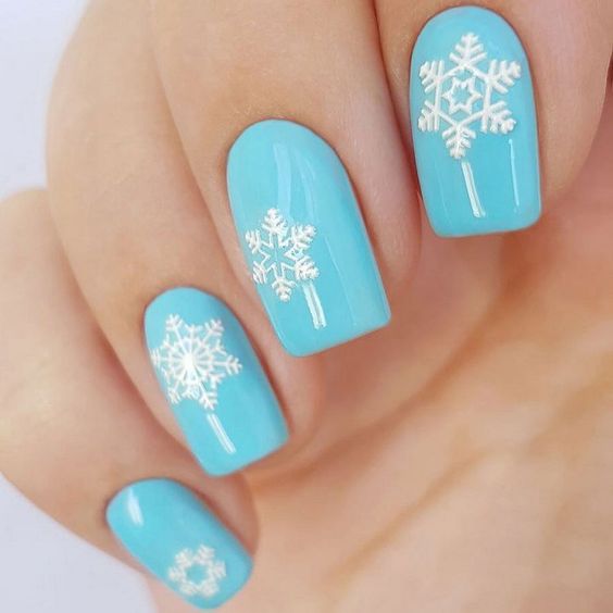 Souvent, de nombreuses personnes associent la couleur bleue à la conception des ongles d’été. Néanmoins, il s'agit d'une excellente option pour créer un dessin original et élégant de nouvelle année. De beaux flocons de neige, des arbres de Noël, des cadeaux avec des rubans - ce n'est qu'une petite partie de ce qui peut être représenté sur les ongles en l'honneur du Nouvel An à venir.
