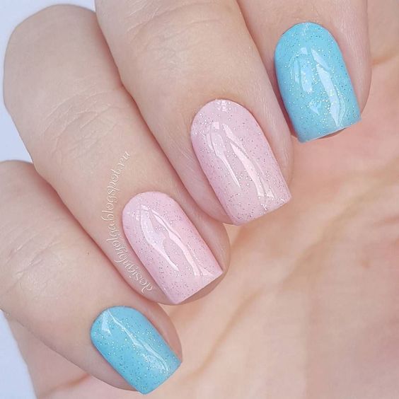 L'effet ou dégradé d'ombre a longtemps été populaire et occupe donc une position dominante en 2026. Ce n'est pas surprenant, car une telle manucure peut être faite à la fois d'été léger, presque invisible et plus vivant. Tout dépend des nuances à combiner. Par exemple, une combinaison de bleu clair et de beige est toujours aussi naturelle que possible. À leur tour, des tons bleus et roses plus saturés sont parfaits pour créer un design dynamique.