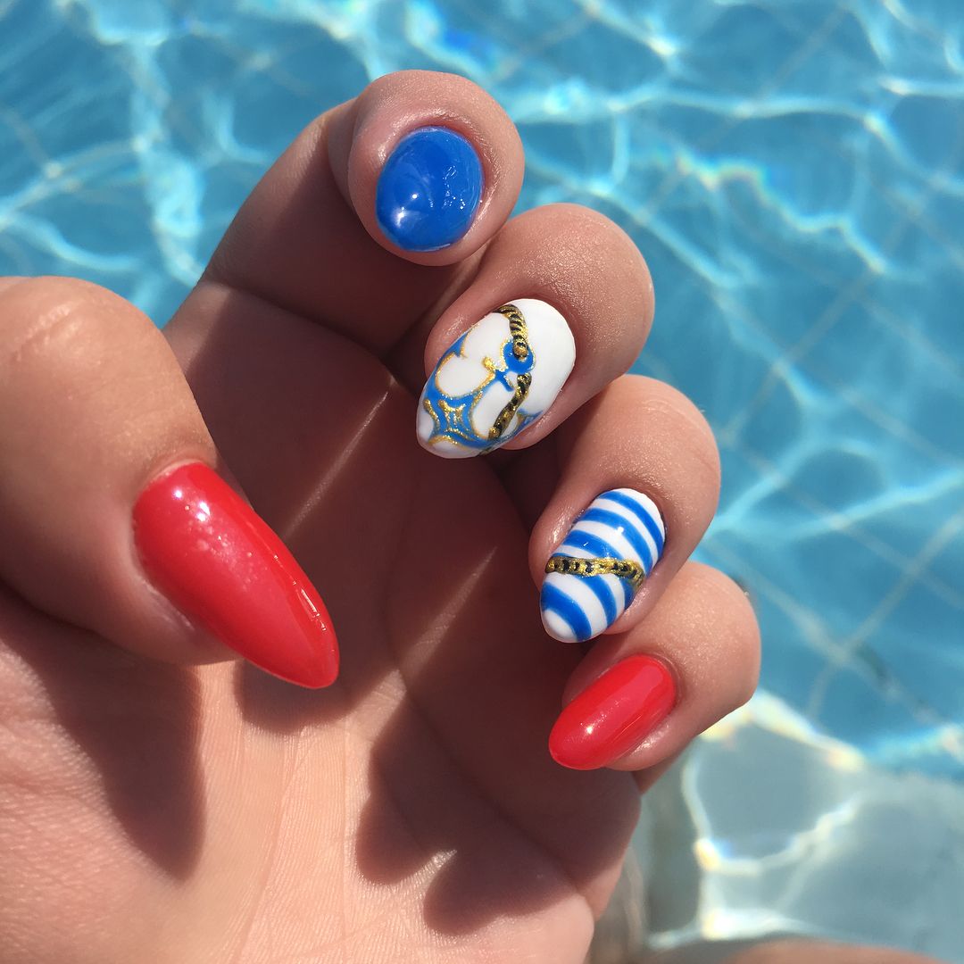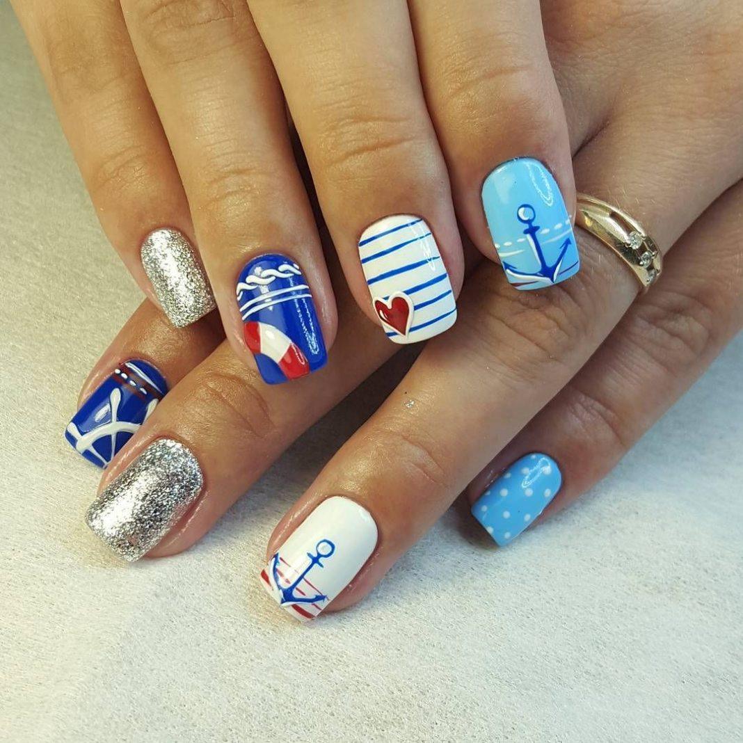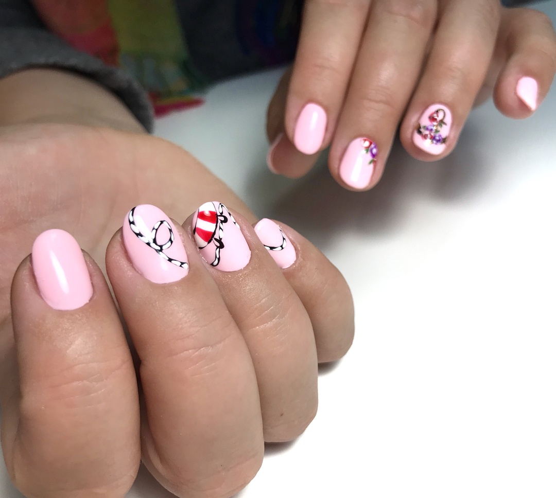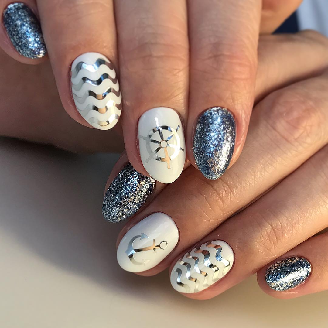 Au vu des tendances actuelles en 2026, il convient de noter des dessins à thème pour des vacances. Parmi eux se trouvent les paysages marins habituels, ainsi que des attributs sous forme de barre et d'ancre. De tels dessins peuvent sembler banals. Pour les diversifier un peu, nous vous recommandons d’utiliser des éléments décoratifs. Par exemple, accentuez les rayons du soleil avec des inserts provenant du frottement et disposez le sable avec une poudre de velours spéciale.