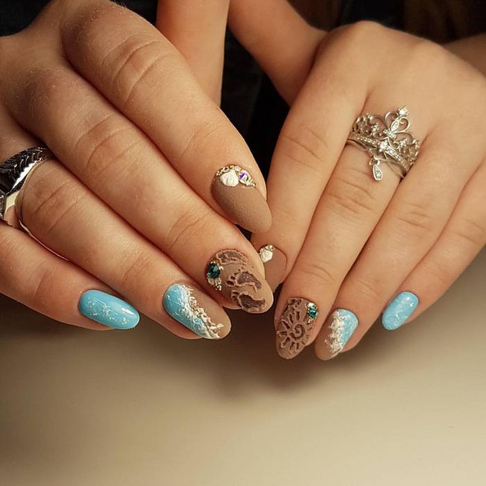 Beaucoup de filles font la même erreur: elles choisissent un dessin sans regarder leurs images. En fin de compte, cela conduit au fait que tous les détails ne vont pas ensemble. Pour éviter cette situation, nous vous recommandons de préparer à l'avance les arcs que vous prévoyez de porter en vacances. Ainsi, il est possible de comprendre quel jeu de couleurs prévaudra. Sur cette base, n'hésitez pas à choisir la teinte et le design de la manucure.