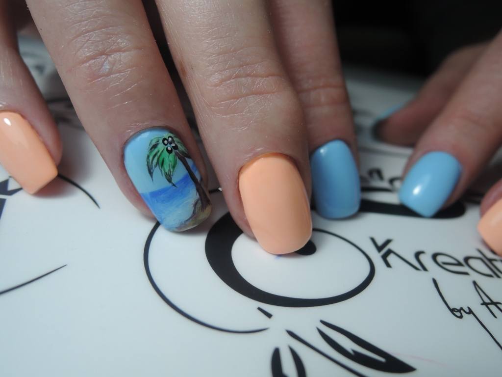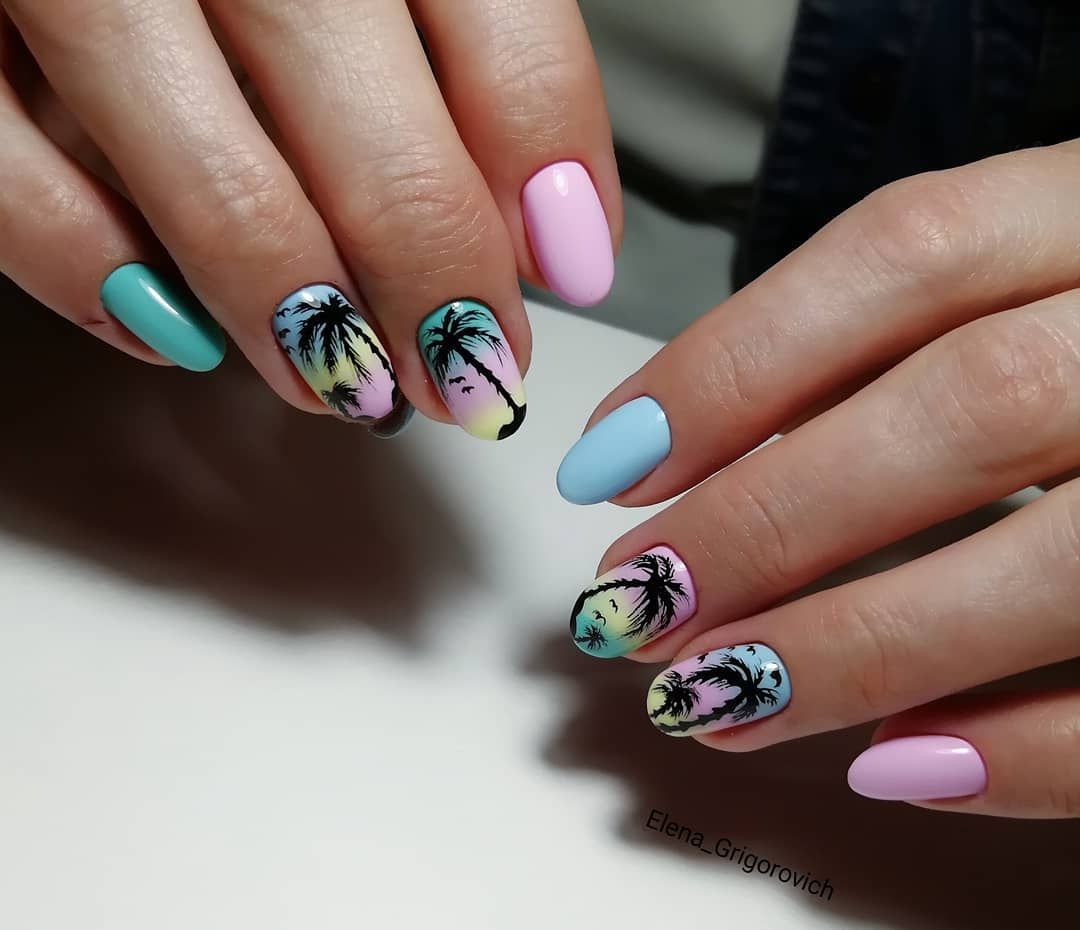 Quant au motif floral, il n’est pas moins pertinent pour les vacances. Il est combiné avec un design marin, créant une véritable émeute de couleurs. En outre, certaines filles cueillent des fleurs en fonction du pays dans lequel elles envisagent de se rendre. Par exemple, pour les pays asiatiques, un dessin avec plumeria est préférable, et pour la Grèce, il vaut la peine de faire une manucure avec un motif olive. Cette approche est particulièrement intéressante et certainement pas banale.