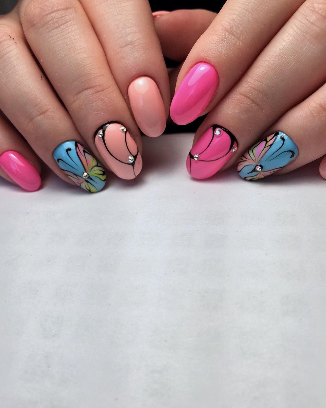 Les couleurs pastel restent également à la mode. Il est préférable de choisir ceux qui préfèrent une manucure calme et sobre. Dans ce cas, vous pouvez ajouter quelques détails lumineux et le design est transformé littéralement sous nos yeux.