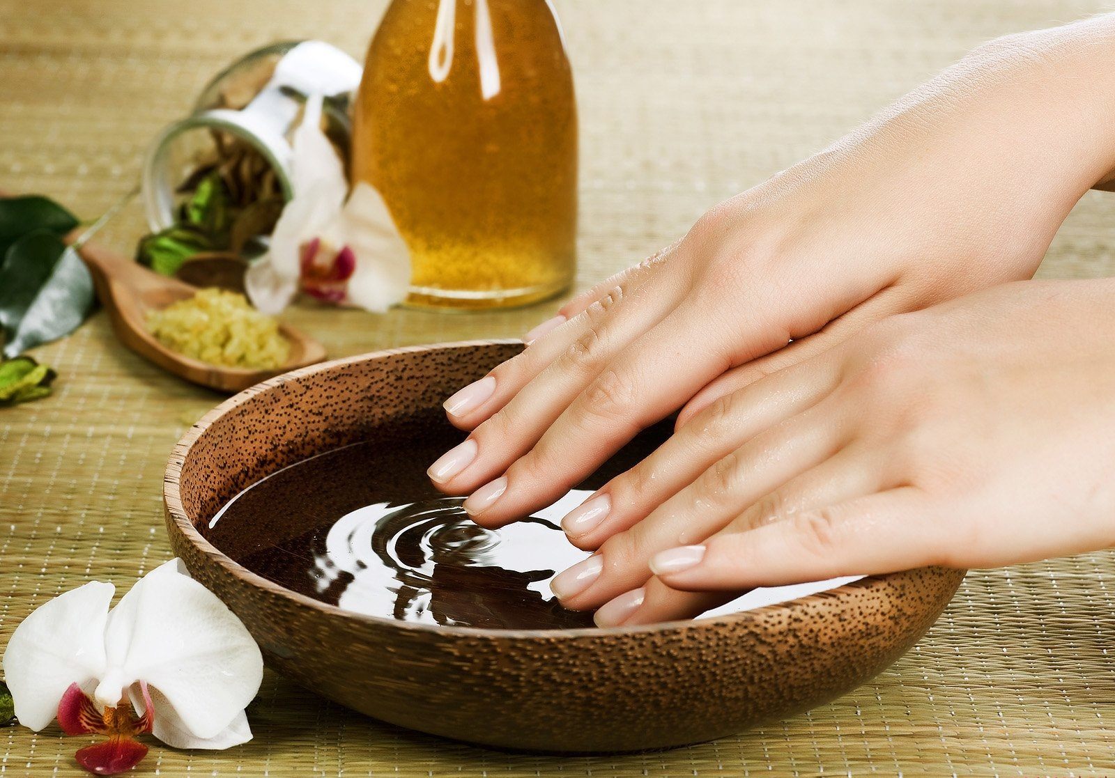 - Pour que le masque soit réparti uniformément sur toute la surface de l'ongle, il est nécessaire d'abaisser non seulement les ongles, mais également tous les doigts dans la solution.