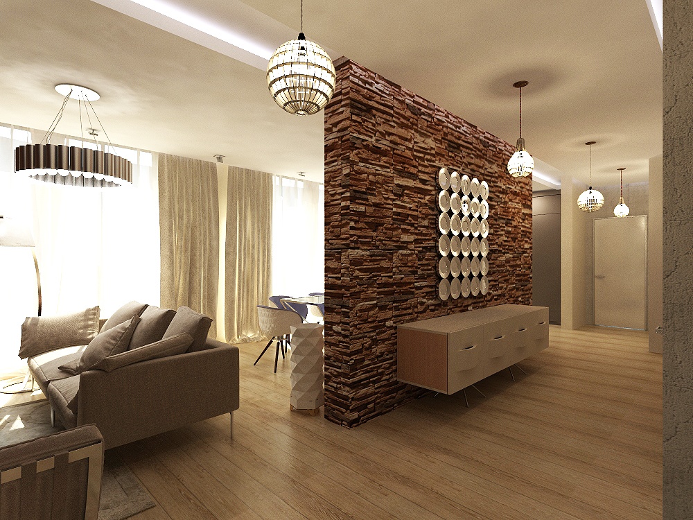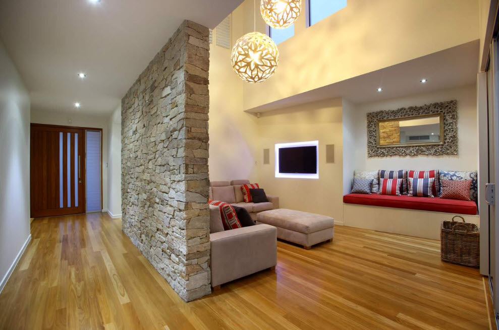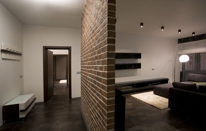 Sur de telles cloisons intérieures, vous pouvez suspendre en toute sécurité des étagères, des armoires gigantesques ainsi que diverses structures massives. Si cette conception est faite de briques creuses, cette solution réduira la charge sur le sol d'environ 20-30%, mais l'isolation acoustique diminuera de la même manière. En raison du poids important de la brique, il est nécessaire de faire appel à des spécialistes pour l’érection de cloisons intérieures en ce matériau dans les immeubles à appartements ainsi que dans les étages supérieurs des logements privés.