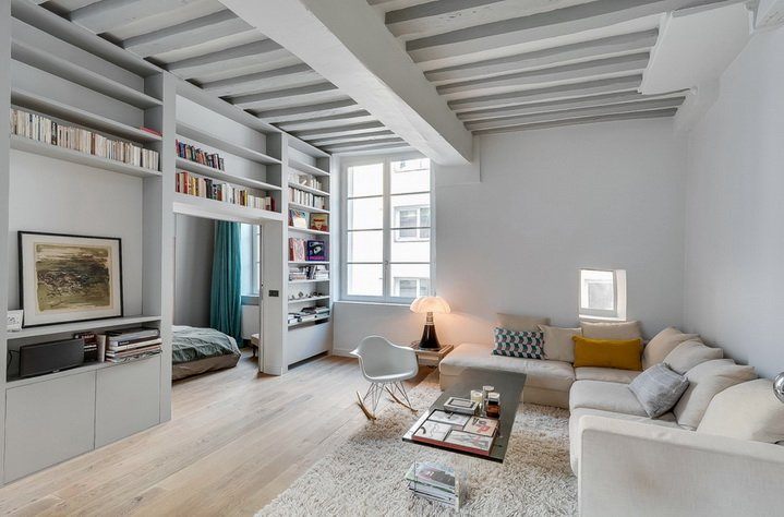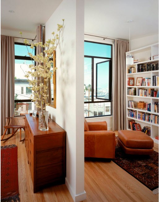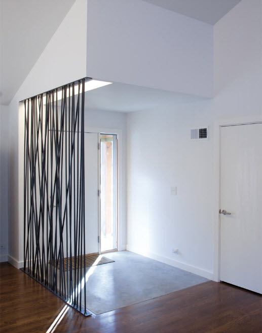 Ce type de cloison intérieure est esthétique et fonctionnel. Ce bel élément de l'intérieur contribue à augmenter les systèmes de stockage, ainsi que le zonage de la pièce. Cette cloison intérieure peut être utilisée efficacement des deux côtés.