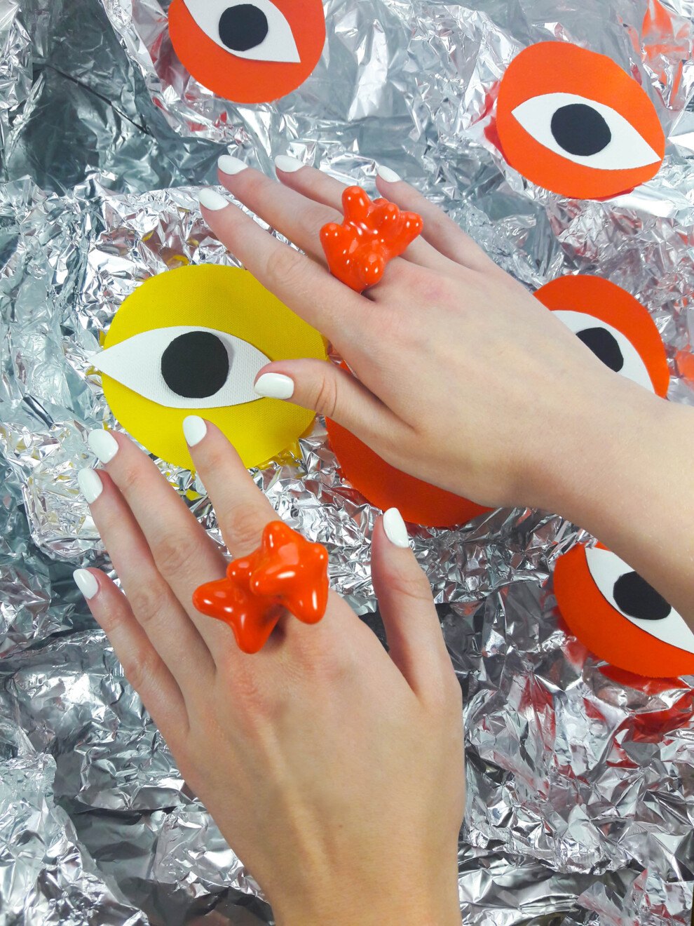 L'option réelle en cette saison de la mode était de simples bagues avec des pierres de taille moyenne ou sans elles. Il est recommandé aux fashionistas, comme à l’option de porter des bracelets, de décorer leurs mains avec au moins trois bagues d’une main. Vous pouvez les placer sur les phalanges moyenne et supérieure des doigts, et pas seulement aux endroits habituels. Pour votre commodité, ces bijoux peuvent souvent être achetés dans un ensemble. Une autre caractéristique fascinante était simplement les anneaux géants, des anneaux qui occupaient la quasi-totalité de la phalange du doigt, réalisés dans un design futuriste, avec une touche de fantaisie spatiale. Ce sont ces bagues qui feront de vous une jeune femme élégante cette année.