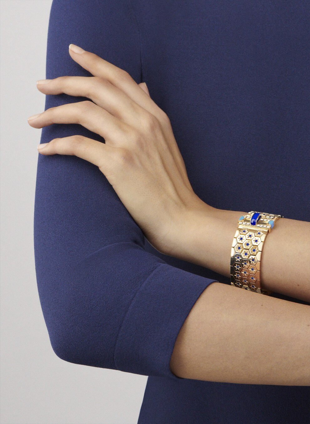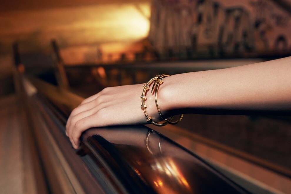Les bracelets de différentes formes bizarres sont très populaires aujourd'hui: un nœud noué, par exemple, un œillet ou un signe infini. Et comme mentionné ci-dessus, ils doivent être portés en grande quantité et utilisés en complément des montres-bracelets élégantes. Vous pouvez décorer avec de tels accessoires non seulement les poignets sur les mains, mais aussi les avant-bras et les chevilles des jambes.