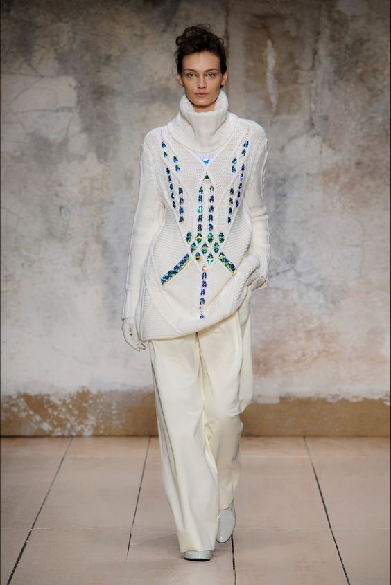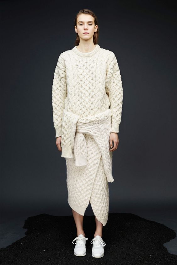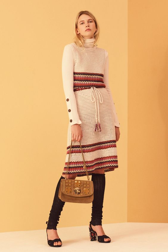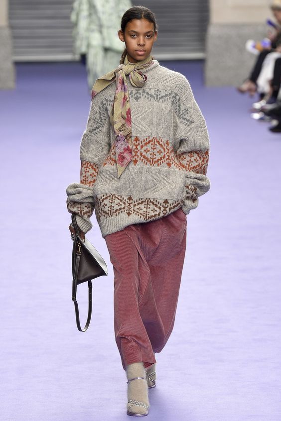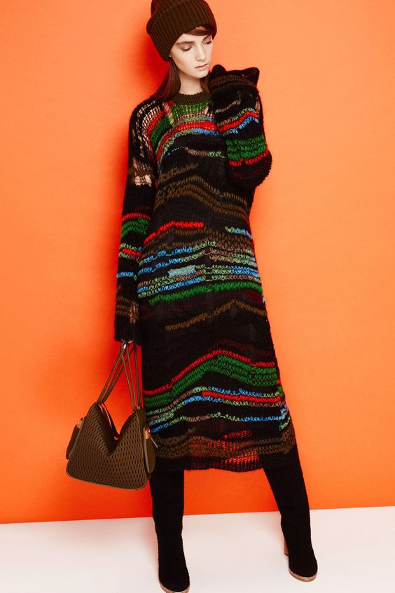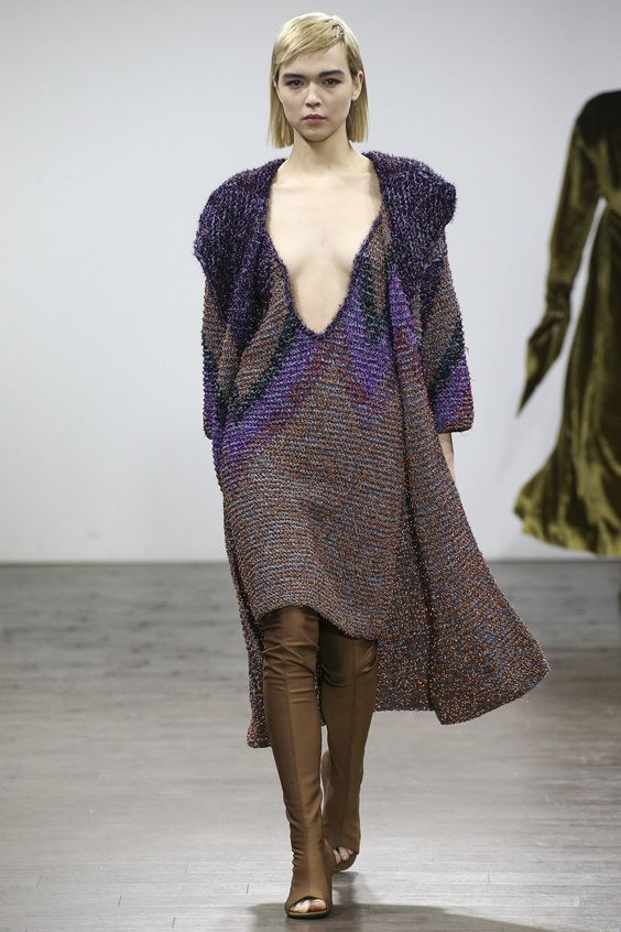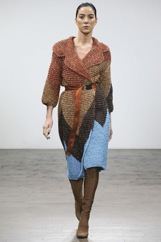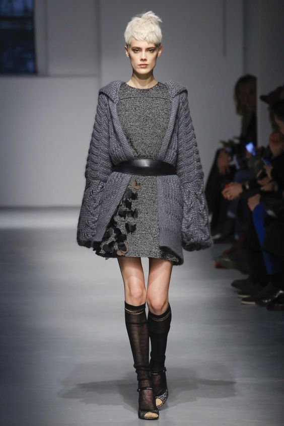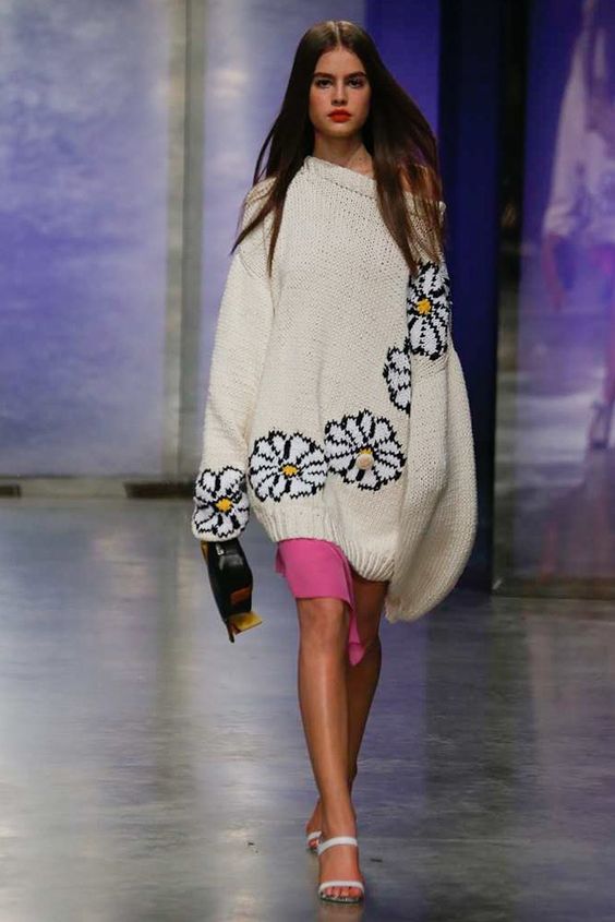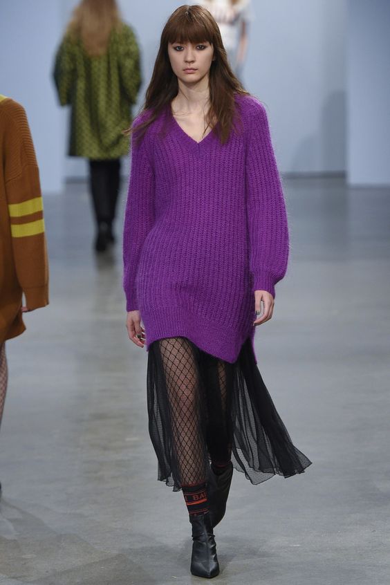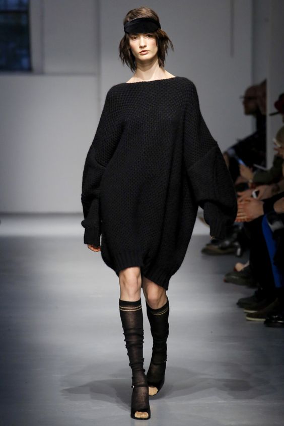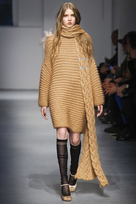 Lors des défilés de mode ont été présentés et des combinaisons plus complexes. Par exemple, une robe classique ou une robe d'été avec un pull en tricot volumineux. Le look multicouche confortable n’est pas moins élégant, il est idéal pour les journées très froides d’hiver.