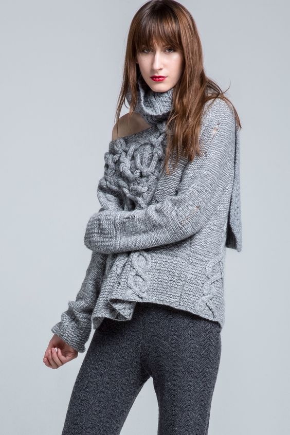 Nous recommandons de faire attention à la qualité du matériau et du tricot lui-même. Pendant la saison froide, la tendance sera angora tendre, cachemire et laine. Par conséquent, même avec un faible pourcentage de tels fils, les choses seront très chaudes et agréables pour le corps. Dans ce cas, le tricot peut être simple, concis ou complété par un motif en relief, des tresses. Chacune de ces options a l'air bien à sa manière.