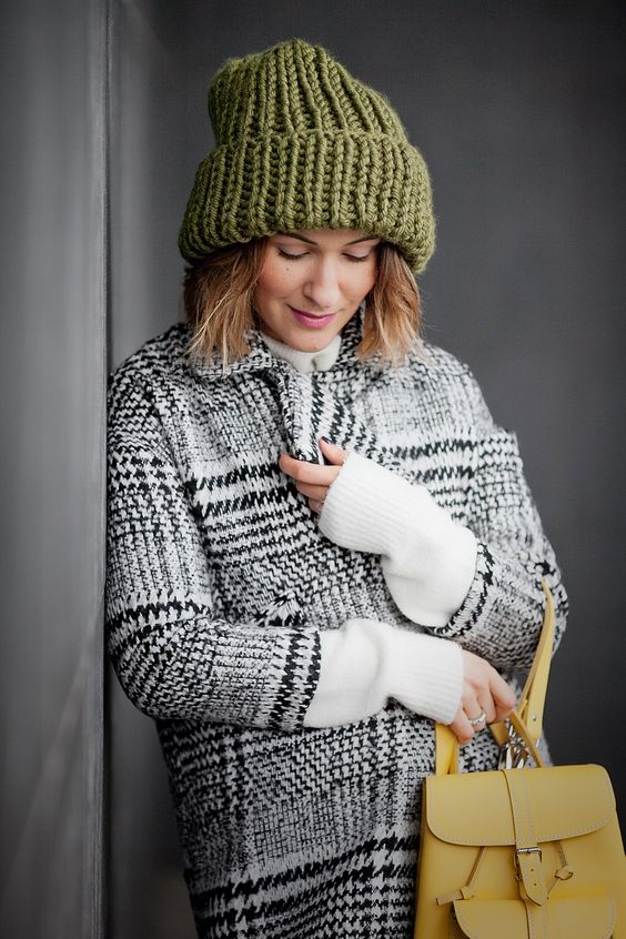 Bien sûr, pas une seule image pendant la saison froide ne peut se passer d'accessoires tricotés élégants. Il peut être intéressant de porter de gros chapeaux très jolis.