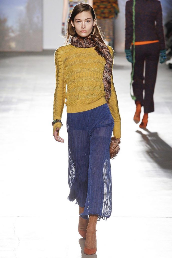 La plupart des créateurs de mode de leurs collections ont présenté des écharpes fines et très longues. Il peut être fabriqué à partir de tricot ou de fourrure, ou de tout autre matériau.