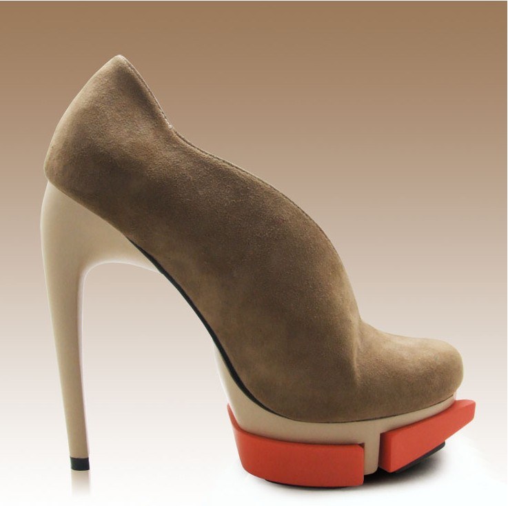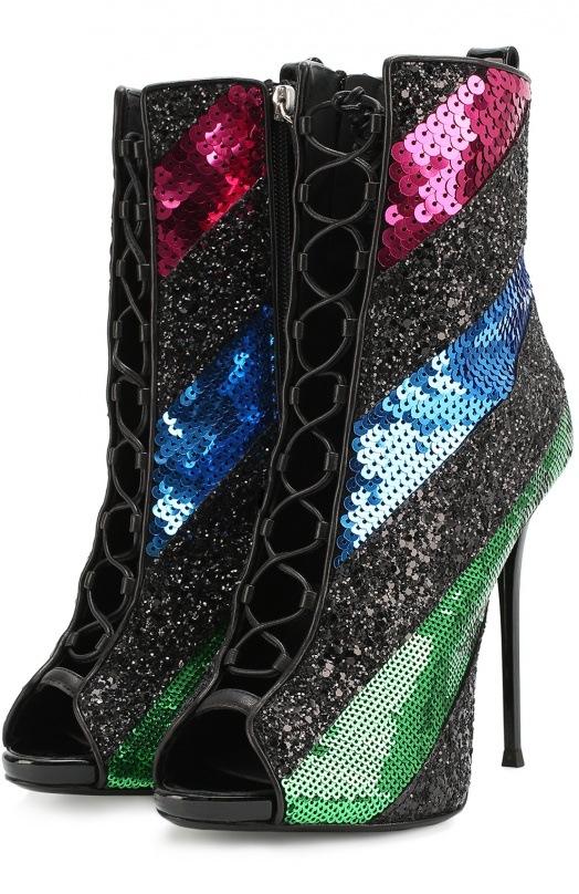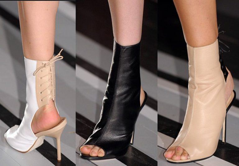 Les modèles de bottines à bout ouvert sont très inhabituels et féminins. De telles chaussures ont été démontrées par la marque de mode “JEAN GRITSFELDT”. La section des orteils ouverts donne féminité et luxe.