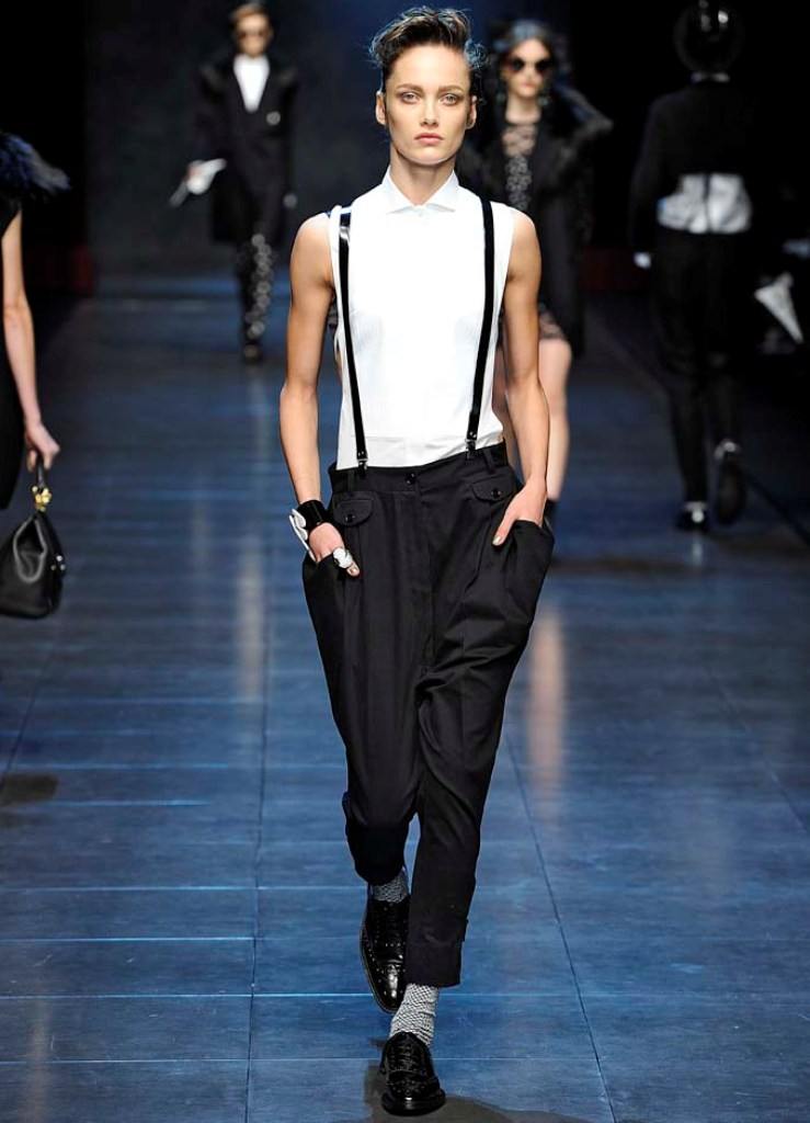 Si vous portez des pantalons à jarretelles, le succès est garanti pour les jeunes! Les stéréotypes selon lesquels les bretelles sont un accessoire élégant pour hommes sont depuis longtemps effacés. Les modèles féminins avec des bretelles sont particulièrement élégants et donnent à la silhouette l'harmonie désirée. De magnifiques pantalons sexy avec des bretelles sont présentés sur les podiums des marques américaines «RALPH LAUREN» et «WOLK MORAIS».