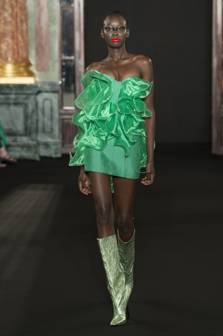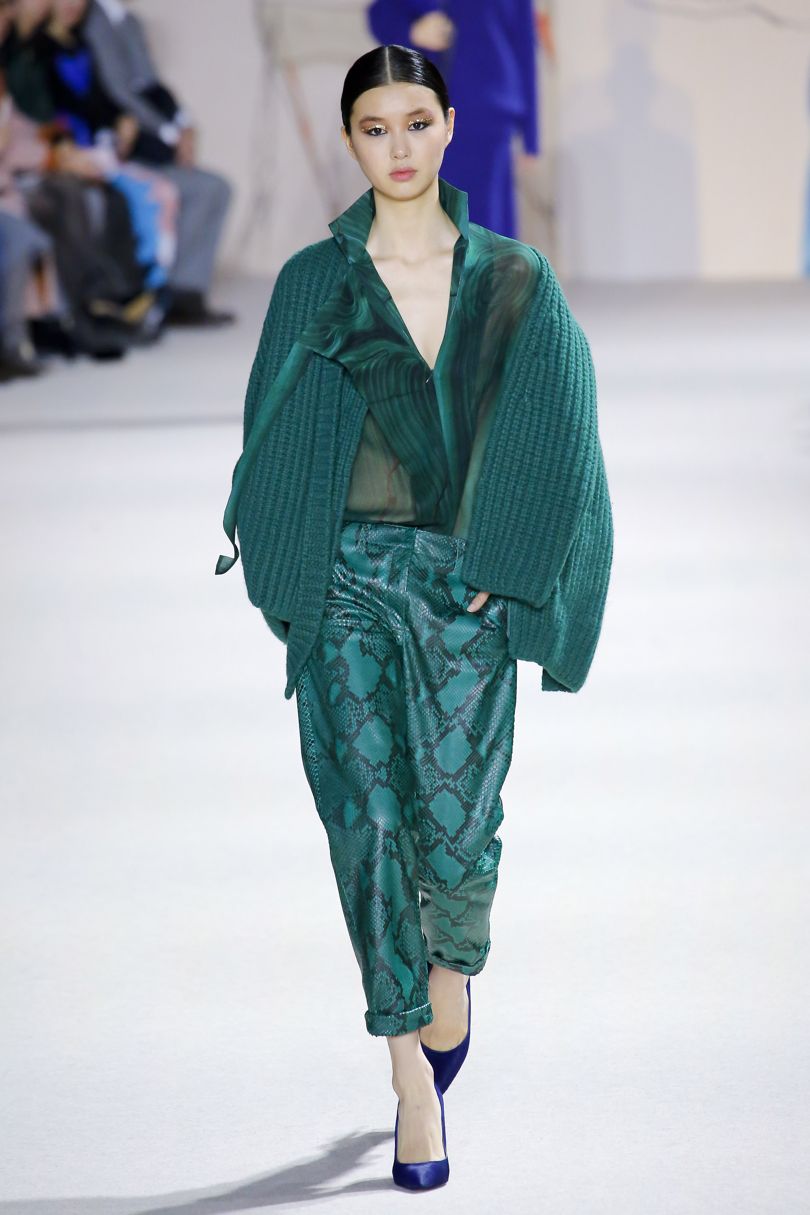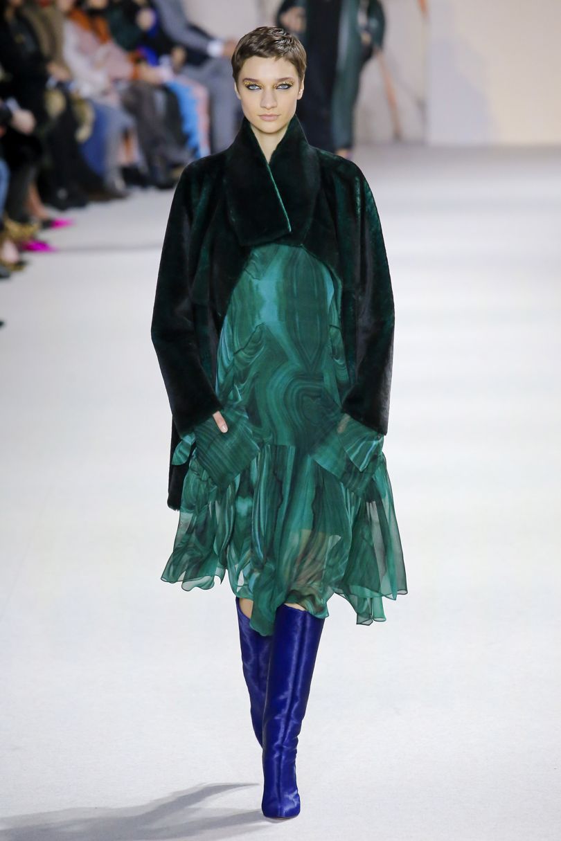 Couleur originale et inhabituelle - quetzal vert. En fait, cette nuance est à la fois assez brillante et profonde. La combinaison de tons de bleu et de vert conquiert hardiment les podiums des plus grandes maisons de couture. Le quetzal vert ressemble à la célèbre couleur de la vague, mais il est plus saturé et plus brillant.