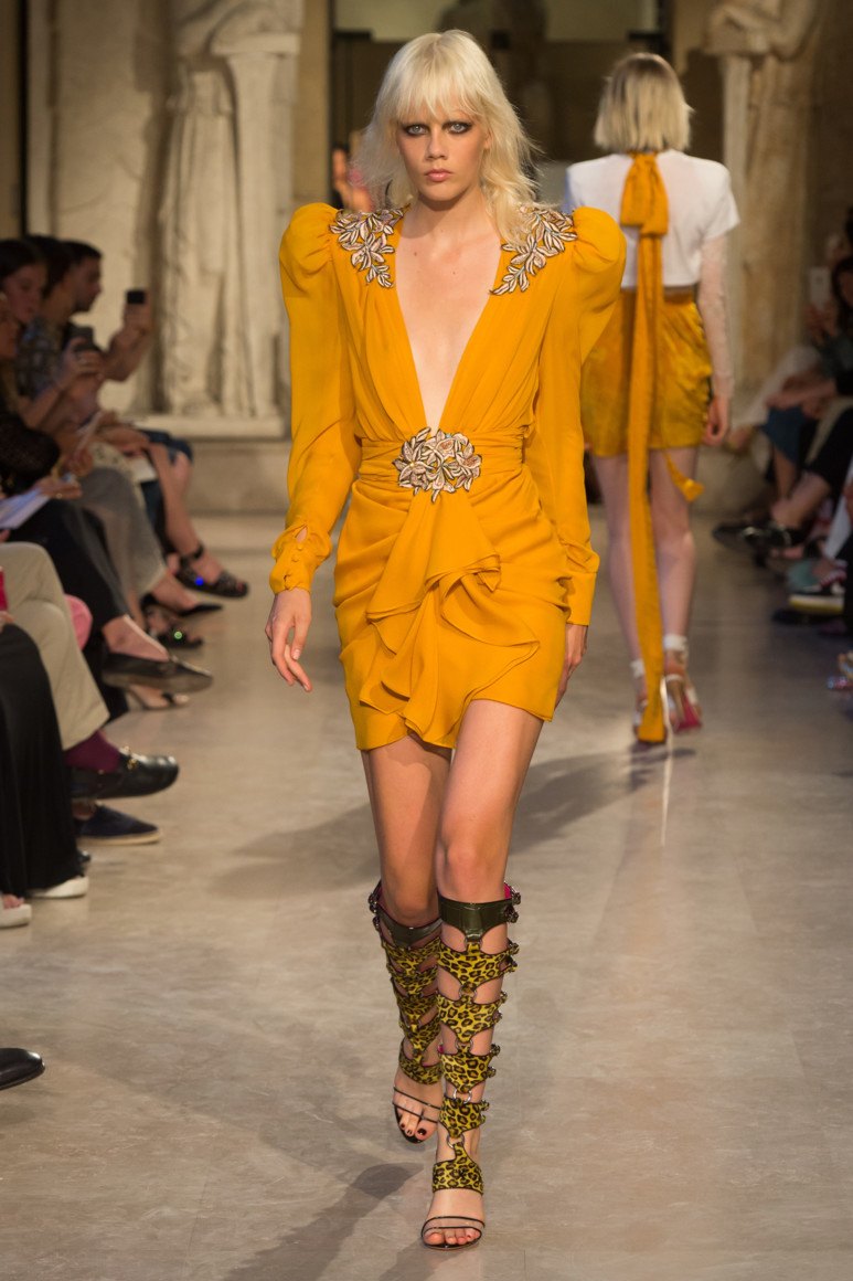 Et une autre nuance de jaune est la lumière de la rampe.Contrairement au jaune ordinaire, la lumière de la rampe se distingue par sa luminosité et, selon les experts de l'Institut Panton, est une couleur vive qui donne à la femme courage et luminosité.