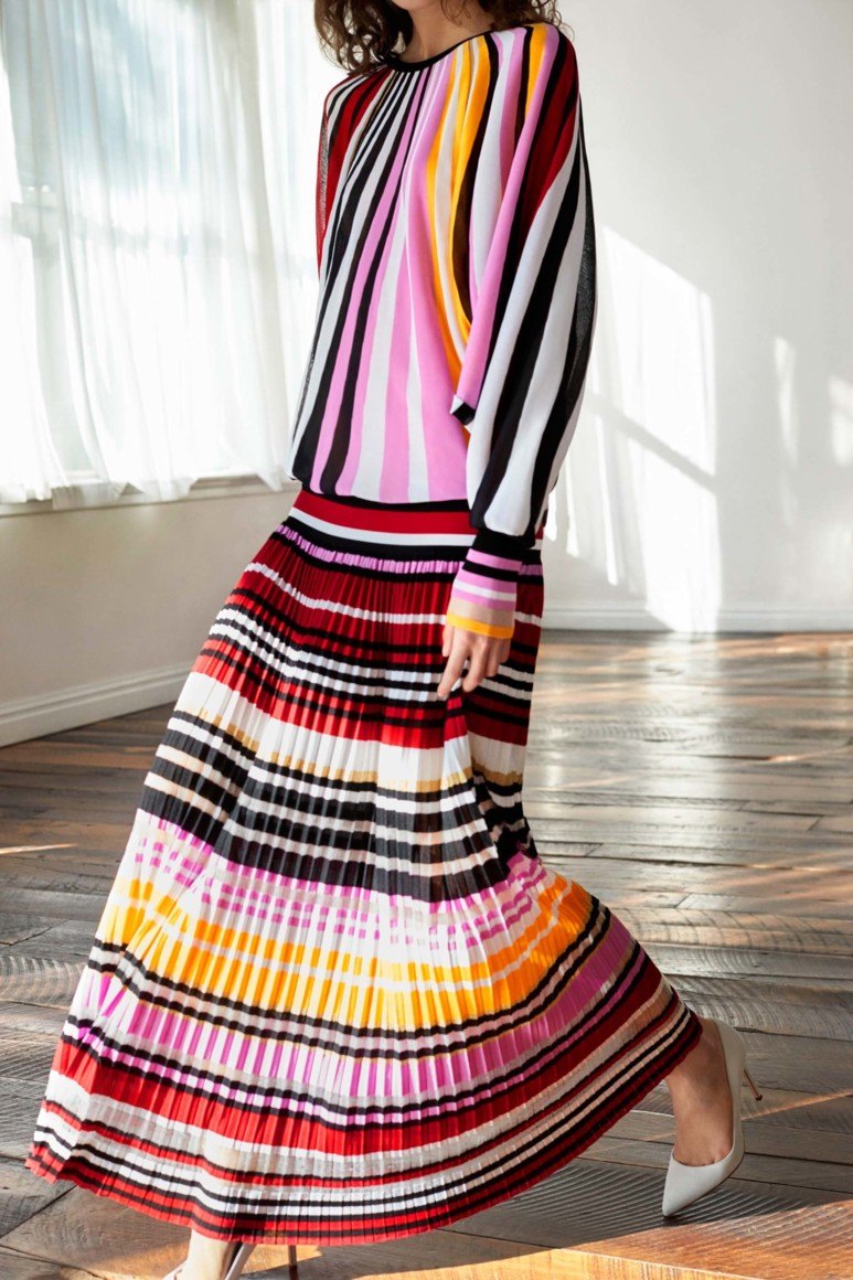 Les jupes plissées sont également à la pointe de la mode automnale. Les motifs multicolores et solides sont incroyables. Les stylistes conseillent de porter des jupes à plis luxuriantes en automne avec une combinaison tricotée à la mode avec un décolleté profond et des manches longues ou un pull tricoté à la main. Les plis cousus sur la jupe du haut de la hanche donnent à la silhouette féminine l’harmonie désirée. Une jupe et un haut correctement choisis devraient se compléter, mais, à en juger par les circonstances, ils peuvent «se démarquer» et séparément. Pour les jupes unies ondulées, le soleil a nécessairement besoin d’une sorte de tache de couleur - un chemisier rouge ou des accessoires accrocheurs. Et ne comptent-ils pas les innombrables petits plis plissés, la longueur réelle de la jupe des femmes? Les plis pour l'automne 2026 sur la photo prouvent leur originalité et leur polyvalence.