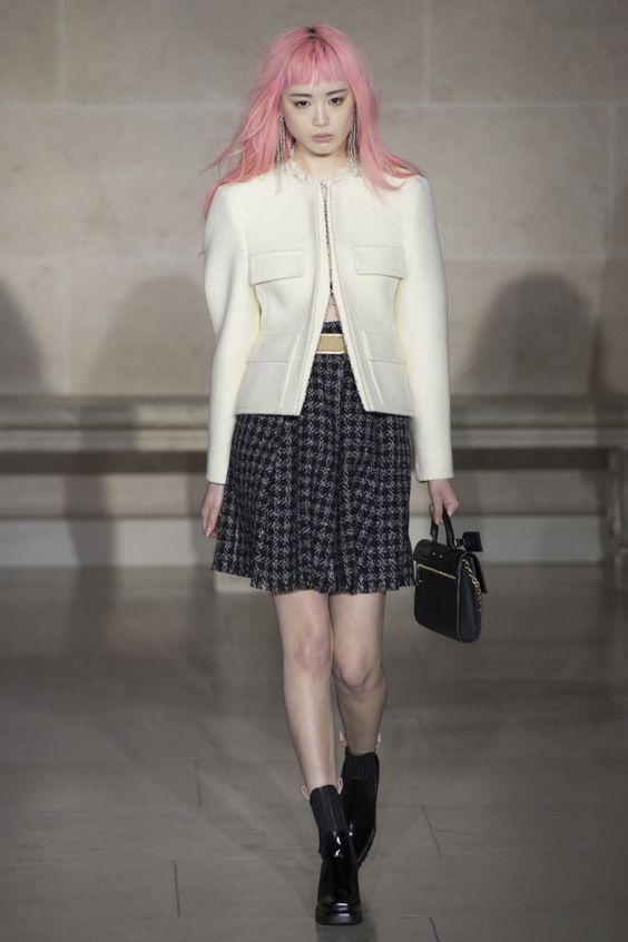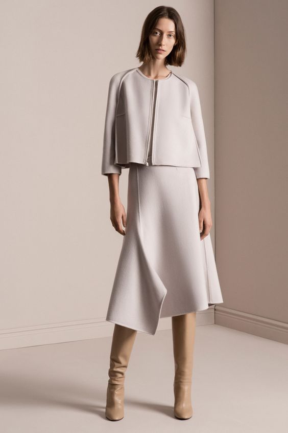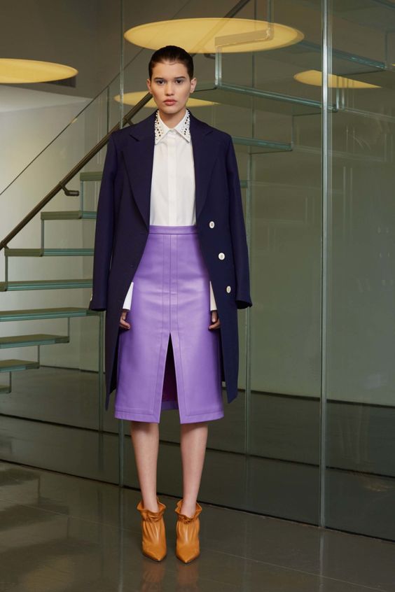 La célèbre jupe classique en ligne est à nouveau à la mode. Pour le créer, on utilisait souvent des tissus qui supportent une forme donnée. En ce qui concerne la combinaison, il est préférable de la combiner avec des collants serrés et des bottes hautes. Pour cette raison, l'image sera plus moderne et élégante.