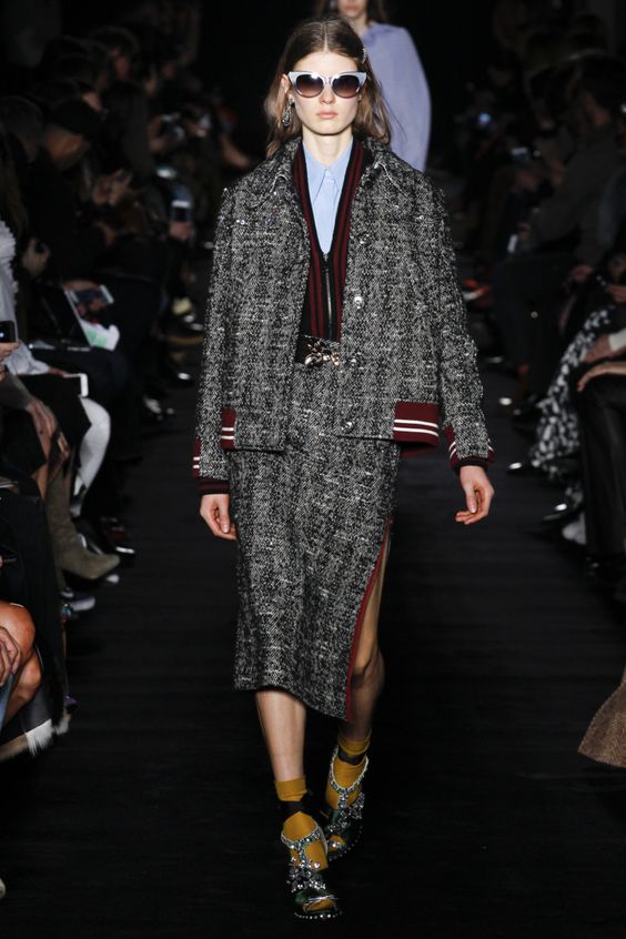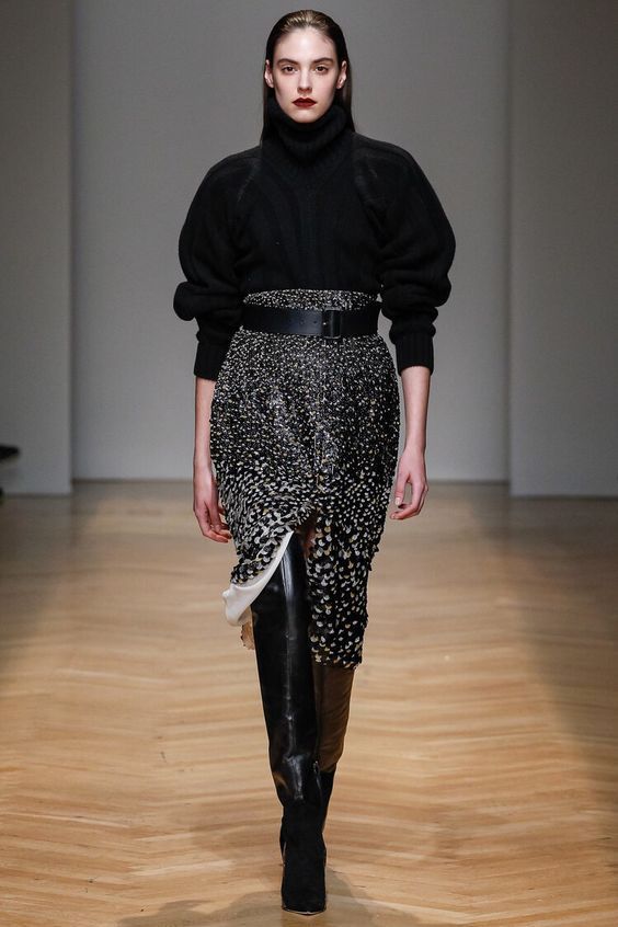 Bien entendu, on ne peut s’empêcher de s’étonner de la présence de jupes en tissus translucides dans la collection de la saison automne-hiver. Néanmoins, les concepteurs prétendent que vous pouvez les porter par n'importe quel temps. Il vous suffit de les combiner avec des collants étroits ou même des pantalons.