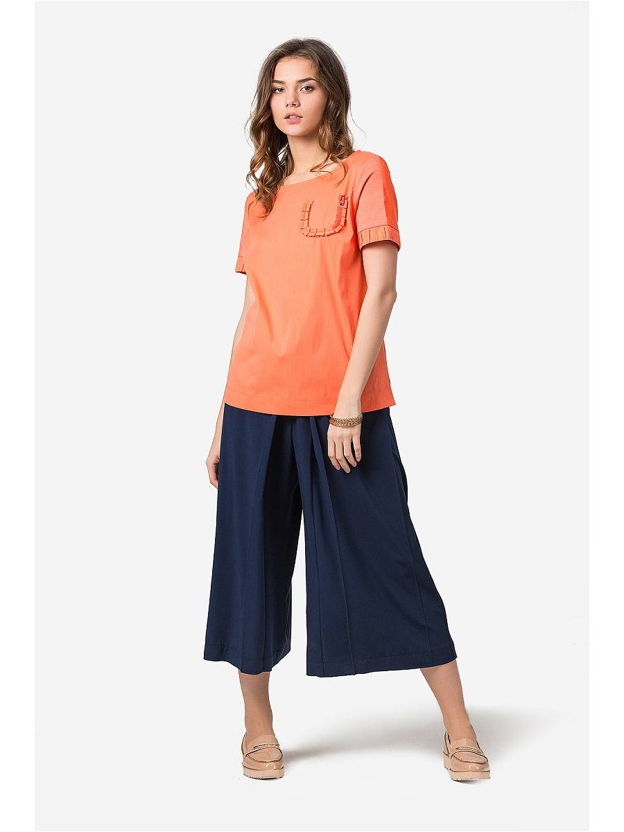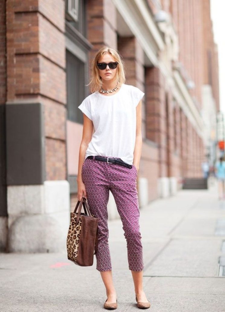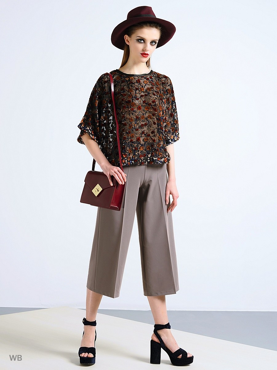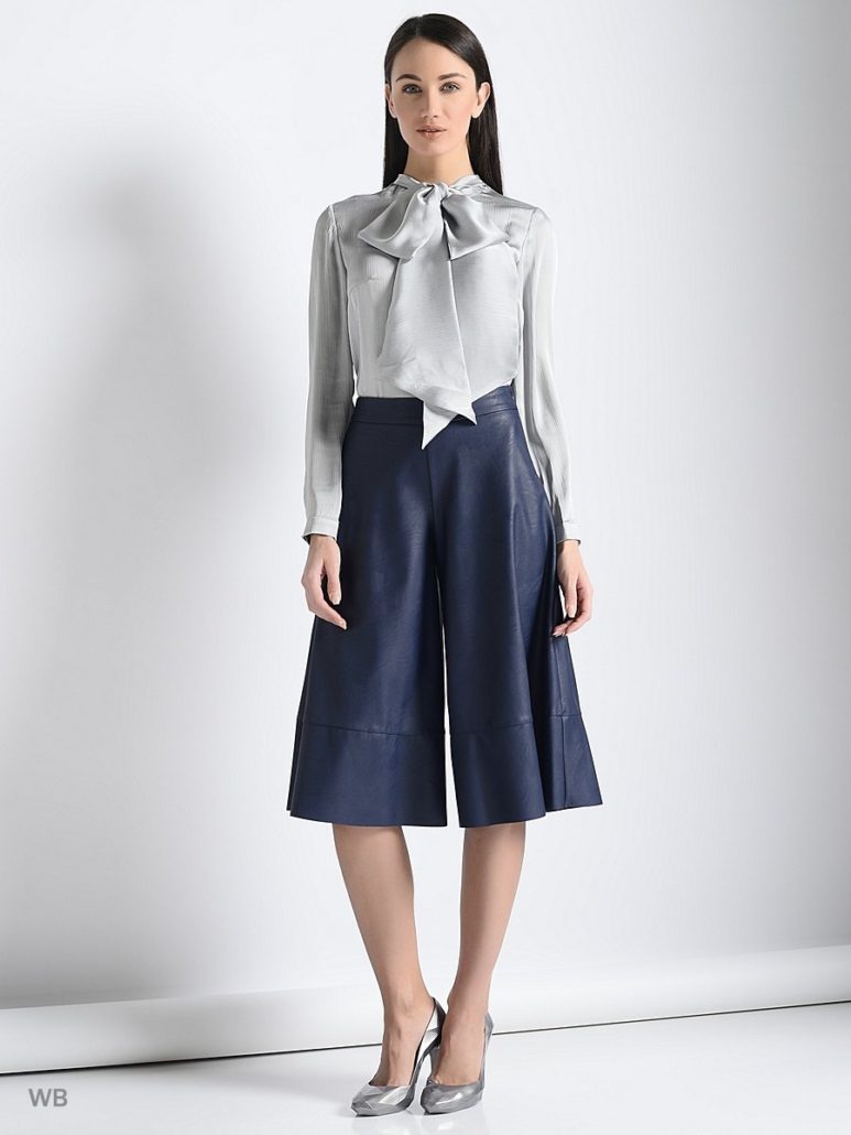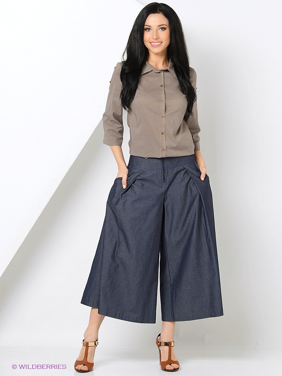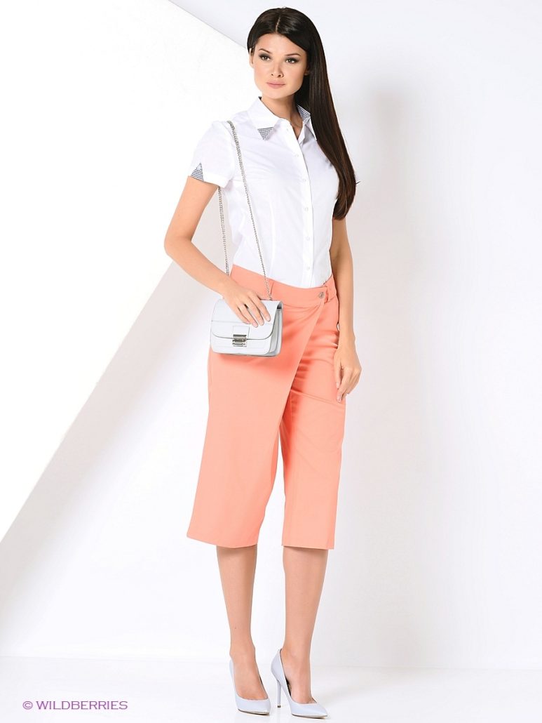 Lors d’une promenade estivale, associez une culotte à un haut court ou à une blouse légère. Cette combinaison donnera à la figure fragilité et grâce. En utilisant une telle taupe de pantalon pour un arc du soir, jetez le maquillage trop provocant, sinon vous risquez de devenir comme un clown.