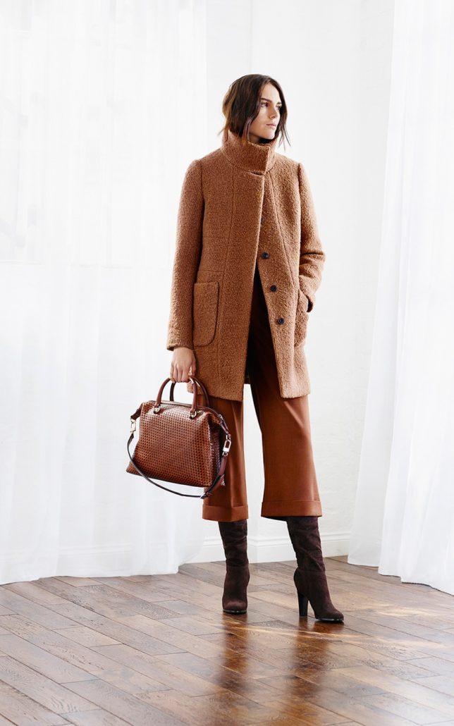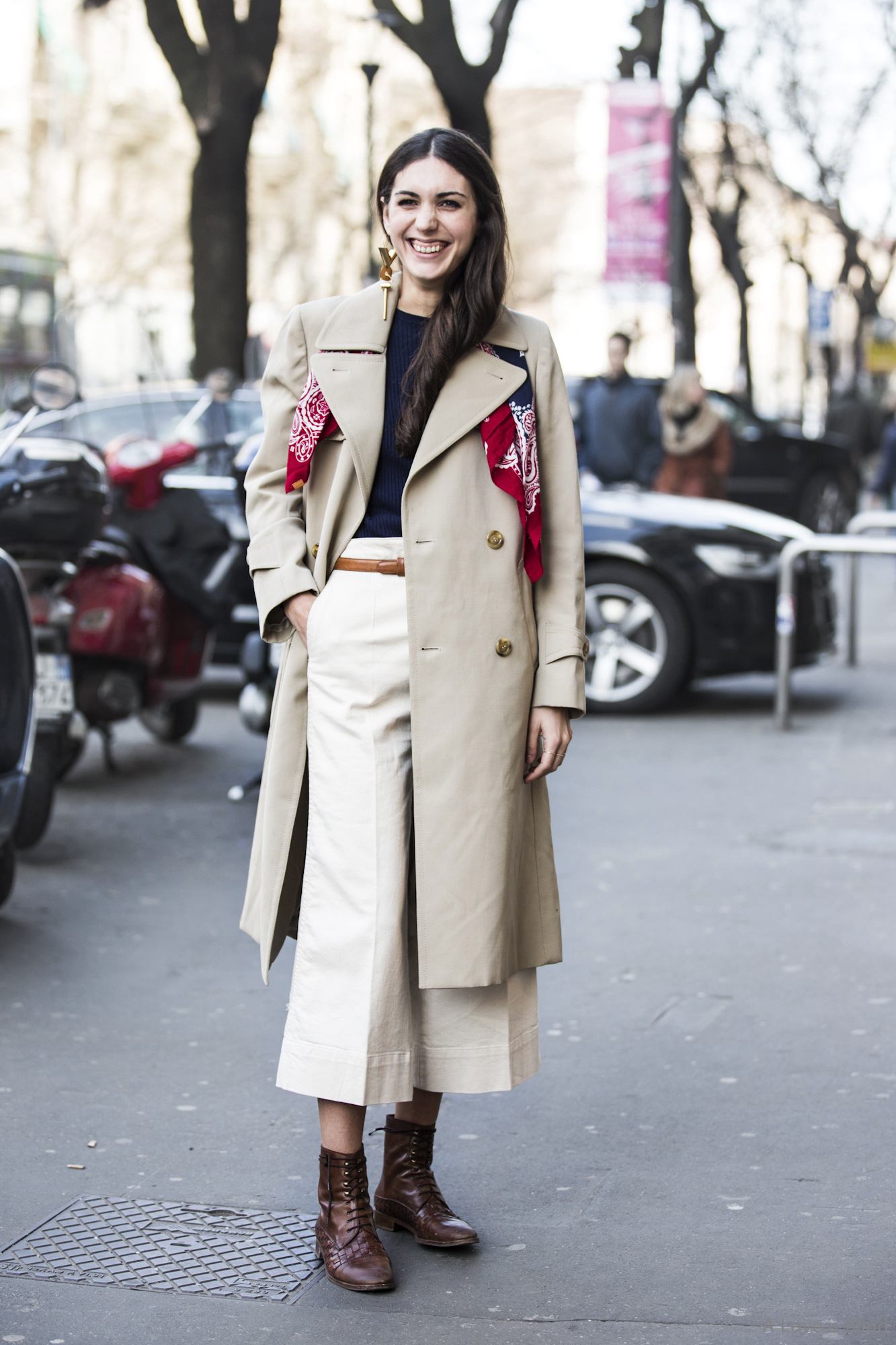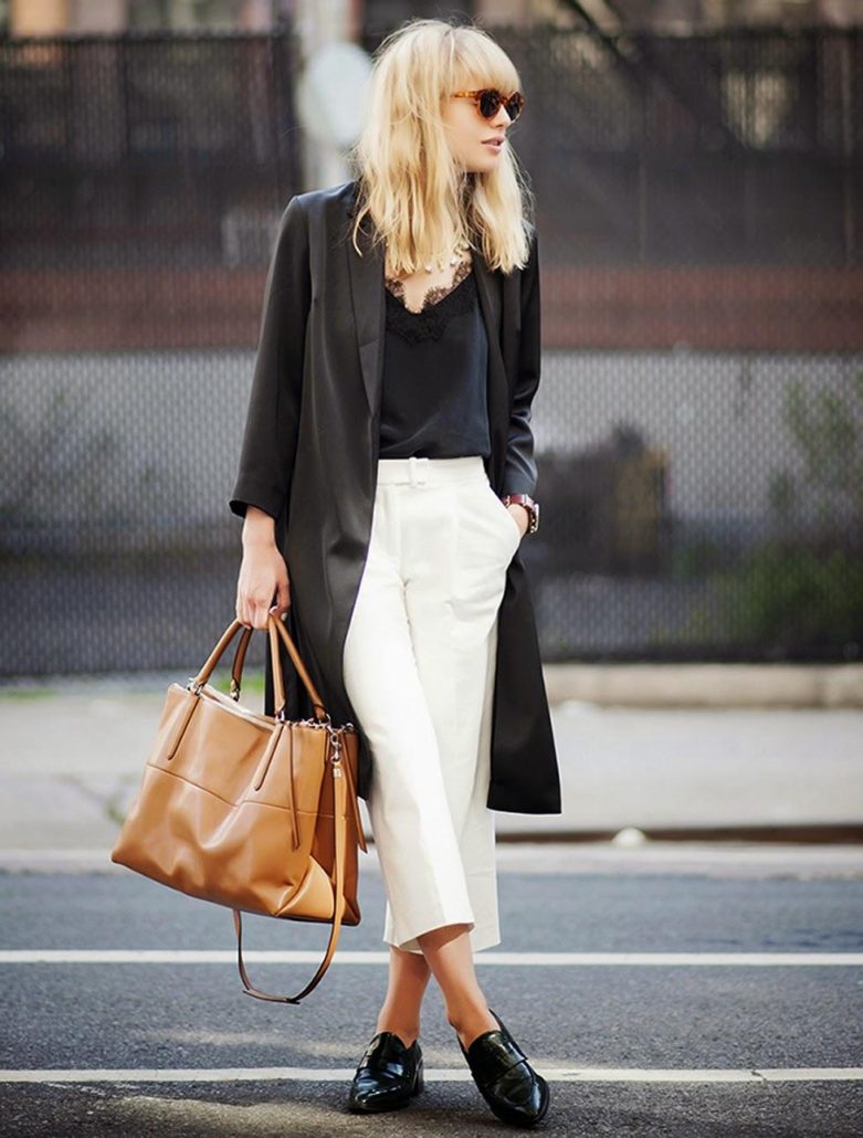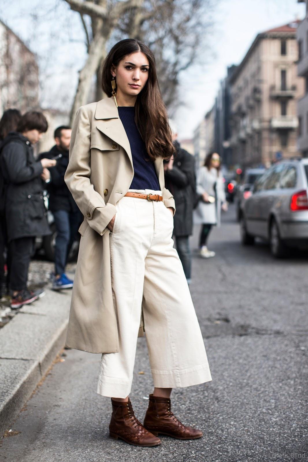Au printemps, les culottes sont associées à un manteau léger. Cette image est élégante et en même temps officielle. Pour créer une image audacieuse facilitera leur combinaison avec une veste ou une veste en jean.