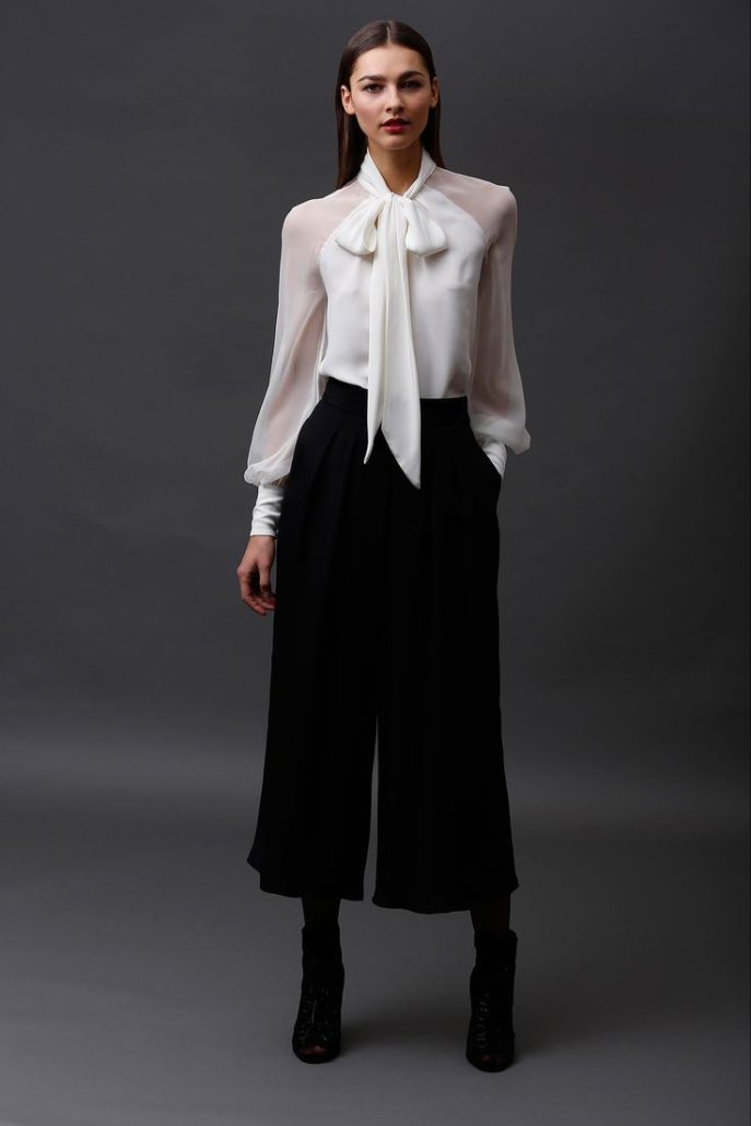 Les culottes sont déjà devenus pour de nombreuses fashionistas un symbole d'égalité et de liberté. Par conséquent, en créant leurs collections, de nombreux designers en ont fait l’un des postes clés. En raison du fait que ces pantalons laissent les chevilles complètement ouvertes, ils seront pertinents pour la période printemps-été, bien que certains de leurs modèles soient conçus spécifiquement pour l'hiver. Lorsque vous associez une culotte à d’autres vêtements, il est important de respecter non seulement les tendances stylistiques, mais également certaines couleurs.